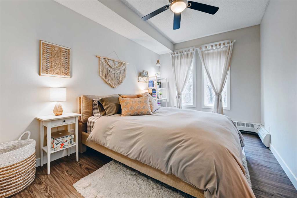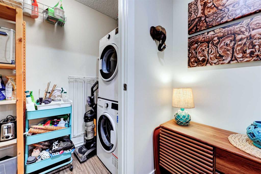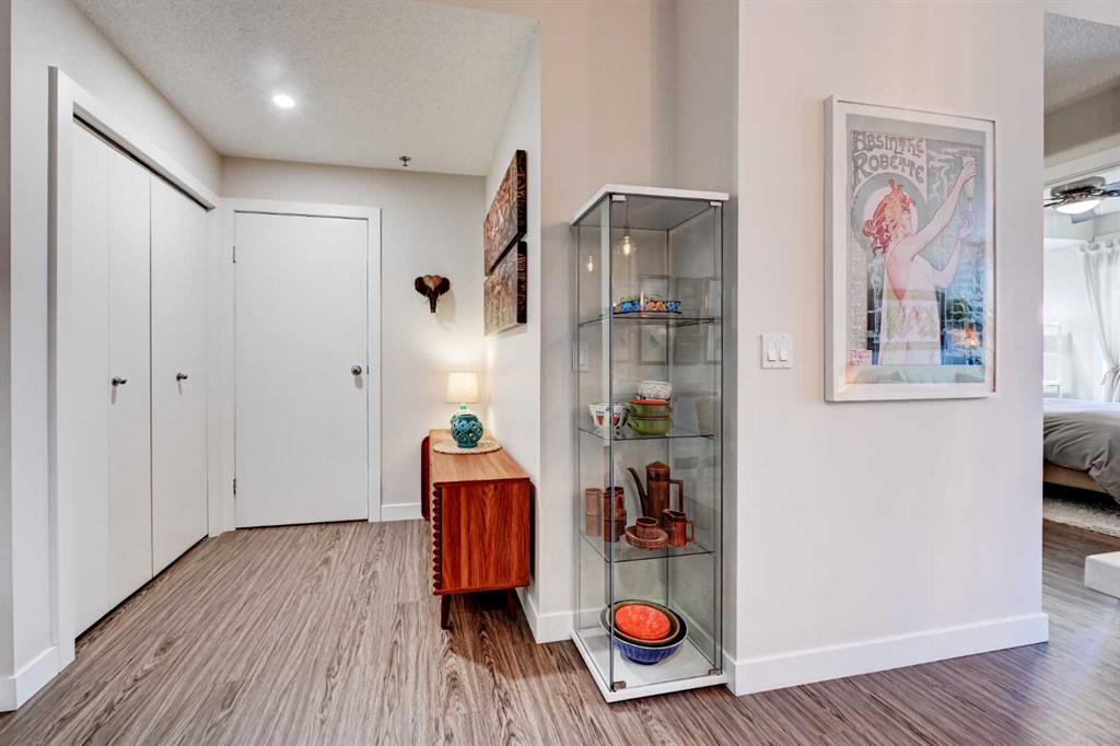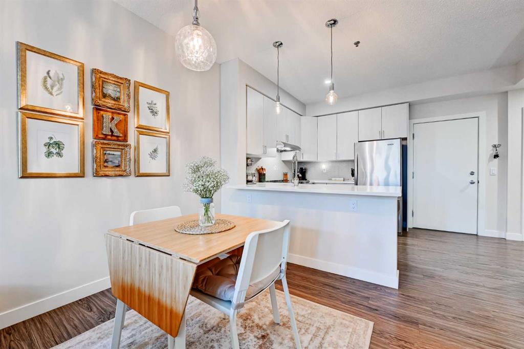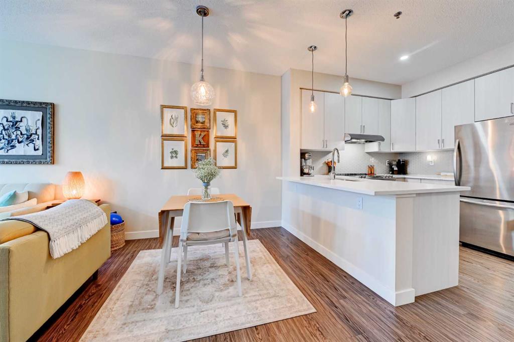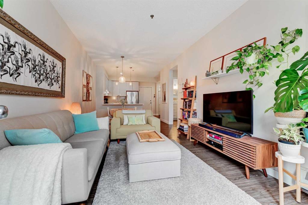 Welcome to this immaculate 1-bedroom executive condo, perfectly tucked into a quiet spot in the heart of the Beltline. Fully renovated in 2020, this warm and inviting home offers a thoughtful open-concept layout, upgraded luxury vinyl plank flooring, a beautifully refreshed kitchen, and a stylish updated bathroom. The contemporary kitchen is both elegant and functional, featuring clean-lined extended-height cabinetry, upgraded quartz countertops, a modern backsplash, stainless steel appliances, and excellent workspace. Designed to inspire your inner chef, the kitchen flows seamlessly into the spacious dining area and comfortable living room, creating an easy, welcoming space for everyday living or entertaining. Step outside to your private east-facing balcony, where the surrounding tree canopy adds a sense of privacy and calm through the warmer months. The bedroom feels like a true retreat, offering a generous closet and plenty of space for a king-sized bed with room left over for additional furnishings. In-suite laundry and a dedicated storage room add everyday convenience. The Paradyme is a well-managed building with a fantastic rooftop patio featuring multiple seating areas and a cozy outdoor dining space, perfect for relaxing or entertaining outdoors. Enjoy the very best of inner-city living, just steps from the shops, restaurants, cafés, and nightlife of the 17th Avenue Entertainment District, with easy access to the CORE Shopping Centre, Calgary Transit, Arts Commons, downtown amenities, and Calgary’s extensive urban pathway and bikeway network. Warm, stylish, renovated, and move-in ready, this exceptional Beltline condo is in a location that truly delivers.