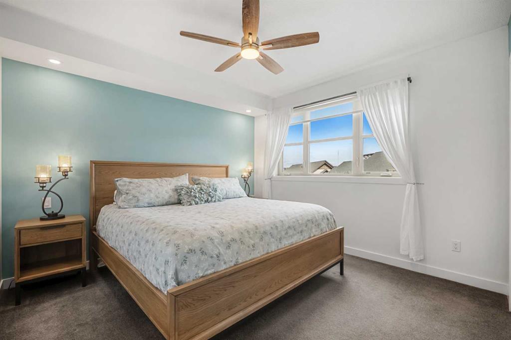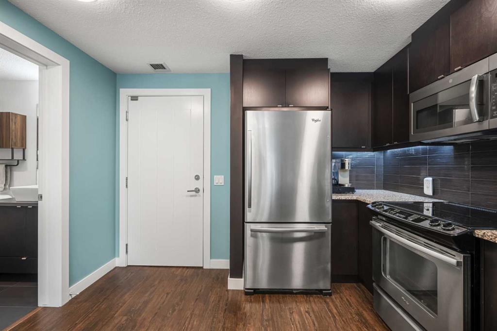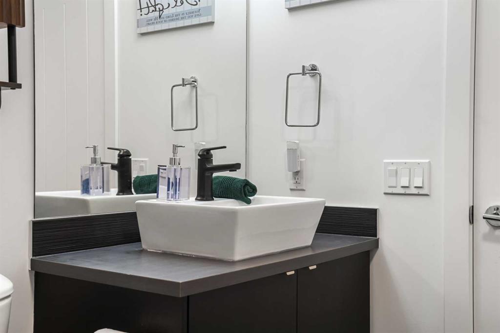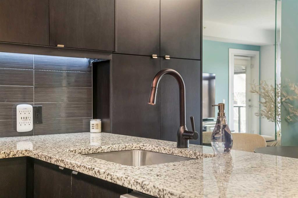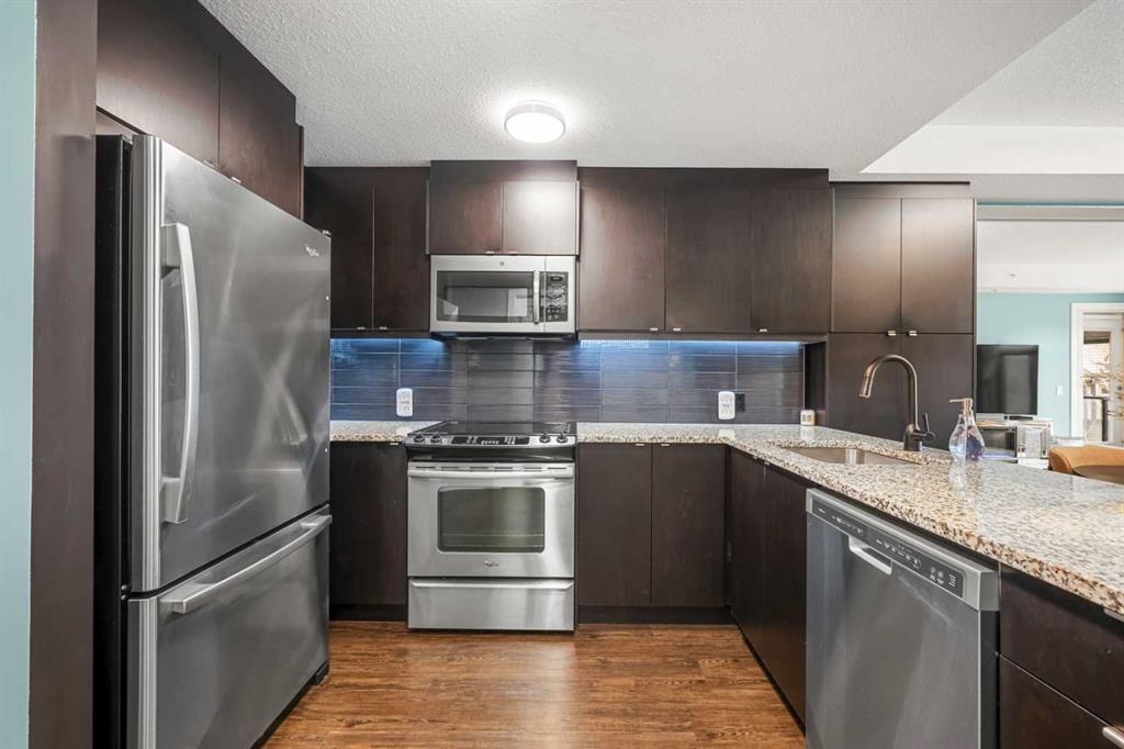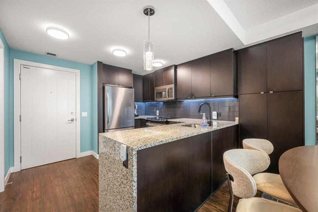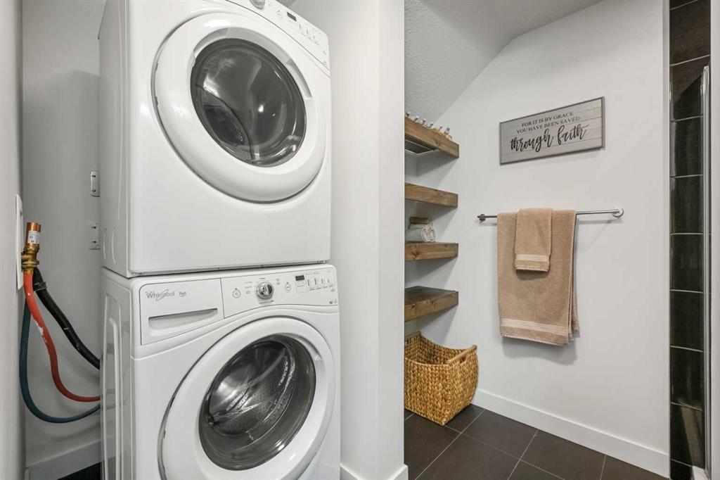 Welcome to this beautifully upgraded multi-level condo in the highly sought-after Aspen community, where modern elegance meets thoughtful design across 911.09 sq. ft. of refined living space. This stunning 2-bedroom, 2-bathroom condo stands out as one of the most desirable layouts in the building, offering exceptional privacy with a unique dual-level layout ideal for professionals, roommates, or guests. Step inside to discover a bright, open-concept main level highlighted by rich vinyl plank flooring, expansive windows, and a seamless flow between the living, dining, and kitchen areas. The contemporary kitchen is both stylish and functional, featuring granite countertops, sleek stainless steel appliances, ample cabinetry, a convenient breakfast bar with a new designer light fixture, a built-in pantry upgrade, new kitchen sink faucet, and newly added under-cabinet lighting that enhances both ambiance and functionality. The inviting living area extends onto a private balcony with the addition of a screen door, perfect for enjoying fresh air and peaceful views. The main level is completed by a beautifully updated 3-piece bathroom with a walk-in shower, new faucets, new modern medicine cabinet, and custom-made wooden shelving, along with a spacious laundry and storage room. Throughout the home, you’ll appreciate thoughtful upgrades including new paint, all-new automated lighting, and automated blinds that elevate both comfort and convenience. Upstairs, retreat to a thoughtfully designed upper level offering enhanced privacy, featuring a generous primary bedroom with a new ceiling fan/light fixture and a luxurious 5-piece ensuite complete with dual vanities, a deep soaker tub, new faucets, a new Toto toilet, a stylish medicine cabinet, and a new shower curtain rod, while the second main floor bedroom is well-sized and ideally positioned. With its functional dual-level design, private feel, and extensive upgrades, this tastefully finished, move-in ready home is a rare opportunity in one of Calgary’s most prestigious communities, just minutes from Aspen Landing, top-rated schools, parks, and transit.