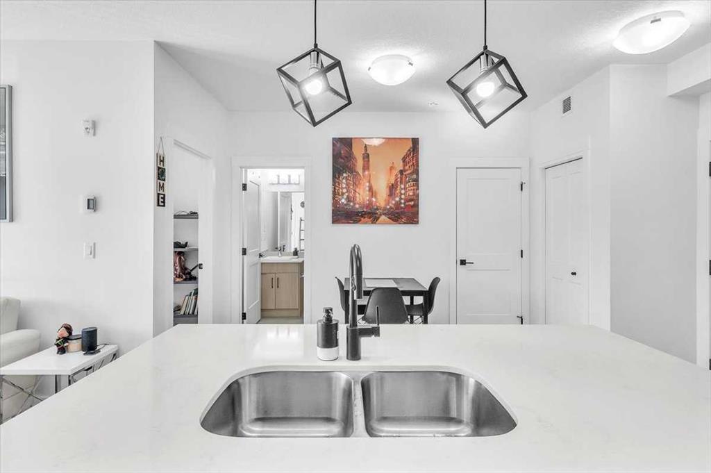 This bright and modern 2 bedroom, 2 full bathroom home offers a thoughtfully designed living space. Inside, you’ll find a natural light-filled open layout featuring a sunny kitchen with sleek quartz countertops and stainless steel appliances that opens onto the living area with South balcony. The bedrooms are strategically positioned on opposite sides of the suite, offering enhanced privacy—ideal for roommates or guests. The primary bedroom boasts a luxurious 5-piece ensuite with dual sinks, adding a touch of spa-like indulgence to your daily routine. This home includes the added convenience of in-suite laundry and dedicated storage, making everyday living even more seamless. Step out onto the south-facing balcony to enjoy your morning coffee or unwind at sunset. Additional perks include large windows to bring in the natura light, secure underground parking with more storage, visitor parking and a well-maintained building with professional management. Just one block from two grocery stores, essential businesses and the new Starbucks, the location provides unbeatable convenience without sacrificing comfort. Whether you’re a first-time buyer, downsizer or investor, this stylish unit is a standout opportunity in one of Calgary’s most desirable NW neighborhoods.