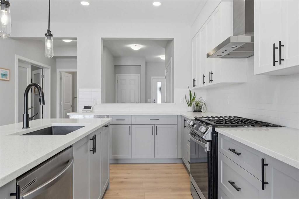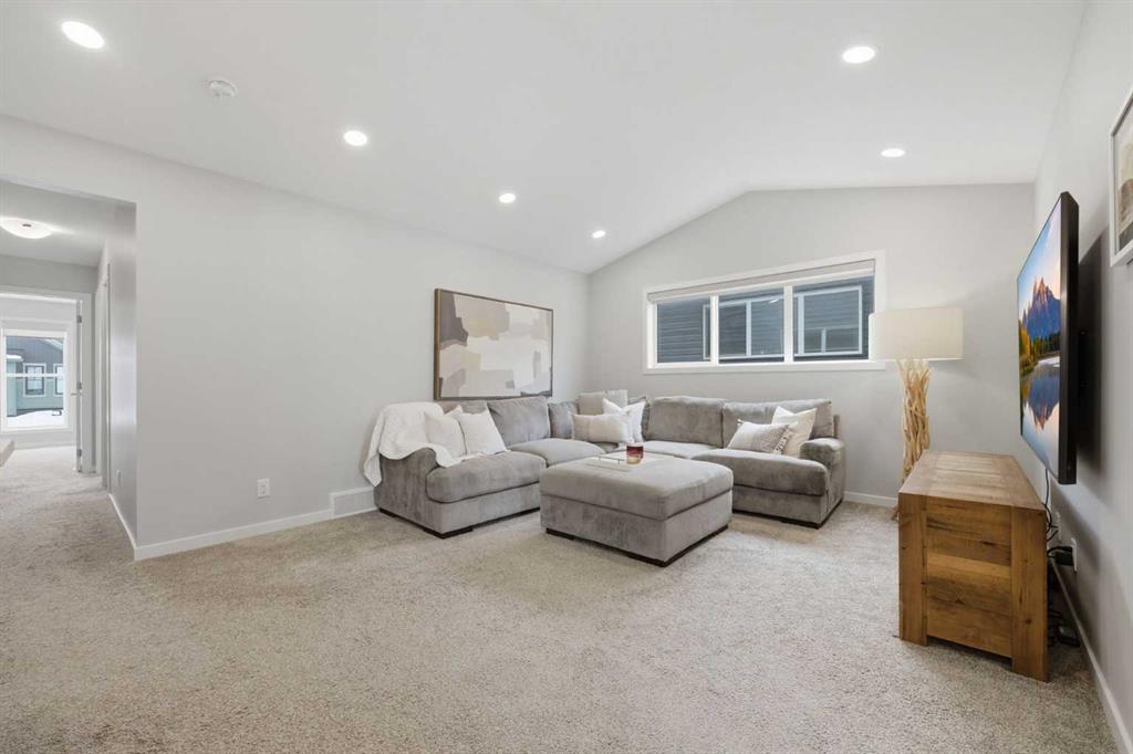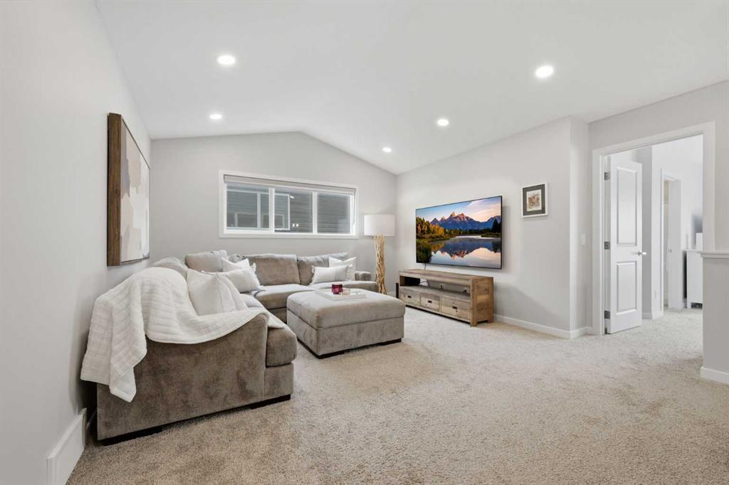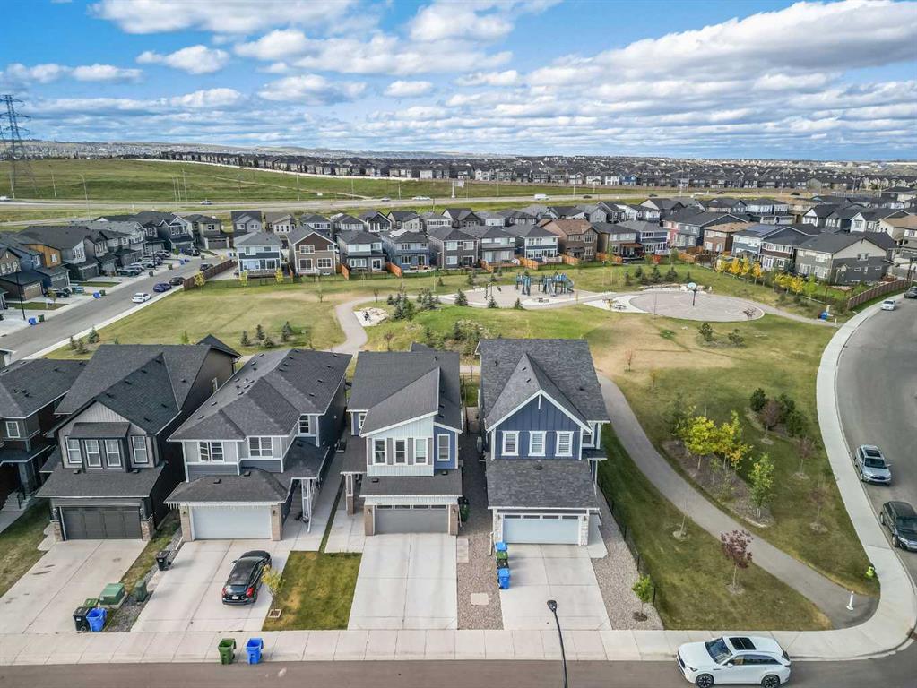 Welcome to Carrington—one of Calgary’s most exciting and thoughtfully planned communities, surrounded by 65 acres of green space, scenic ponds, playgrounds, and direct access to the incredible 138 km Rotary/Mattamy Greenway trail system. This gorgeous 4-bedroom home is perfectly positioned backing onto peaceful greenspace, offering both privacy and beautiful natural views. Inside, you’ll immediately notice the abundance of natural sunlight streaming through the large windows, creating a bright and inviting atmosphere throughout, along with the added comfort of air conditioning. The open-concept main floor is designed for both everyday living and entertaining, featuring a seamless flow between the living room, dining area, and kitchen. A versatile main floor den—easily used as a fifth bedroom—provides the perfect space for guests, a home office, or a quiet retreat, while the conveniently located half bath sits just off the mudroom for added functionality. Upstairs, a spacious bonus room thoughtfully separates the primary suite from the two secondary bedrooms—ideal for families wanting both connection and privacy. The primary bedroom is truly impressive in size and offers a spa-inspired ensuite complete with dual sinks, a large soaker tub, separate shower, private water closet, and a generous walk-in closet. This home has another year left on the build envelop warranty and another 5 year structural beyond that! Carrington continues to grow with exciting future amenities including planned school sites, expanded commercial development, and a future stop along the Green Line LRT—making this an excellent opportunity for both lifestyle and long-term value. Located just 15 minutes from CrossIron Mills, Costco, and Airdrie, you’ll enjoy convenient access to shopping, dining, and everyday essentials while still being tucked into a quiet, nature-filled community.
