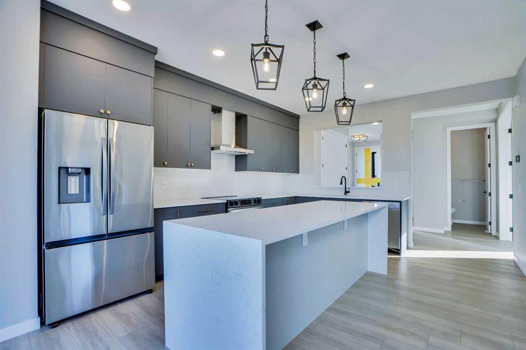 Experience modern luxury living in the Livingston area with the Collingwood model Excel home, featuring high-end finishes and a legal walkout basement suite. The unique exterior is a showstopper, complemented by a modern, functional design and contemporary finishings. Flooded with natural light, this home boasts beautiful finishings throughout. Located in the most sought-after part of Livingston, this excel-built home offers ample square footage and private views. Inside, a bright and spacious living room/dining room awaits, perfect for entertaining, alongside a chef’s dream kitchen with upgraded stainless steel appliances, quartz counters, soft-close cabinetry, a chimney-style hood fan, a built-in microwave, and a spice kitchen. The functional floor plan includes a flex room, four bedrooms plus a bonus room on the upper level, ideal for family living. The primary bedroom features a 5-piece ensuite and large walk-in closets, while the other bedrooms share a 4-piece bath. A conveniently located laundry room is just off the bonus room. The custom-built home also includes a two-bedroom open-concept legal suite with stainless steel appliances, quartz counters, and in-suite laundry. Registered with the city, the suite meets all legal requirements, including separate furnace and water tank. Additional highlights include the Alberta New Home Warranty, a newly built deck, upgraded pot lights, and air conditioning. Nestled in Livingston’s heart, this incredible home is minutes from major shopping centers. Enjoy the epitome of luxury living!
