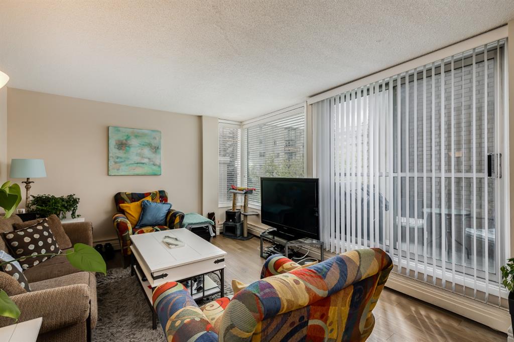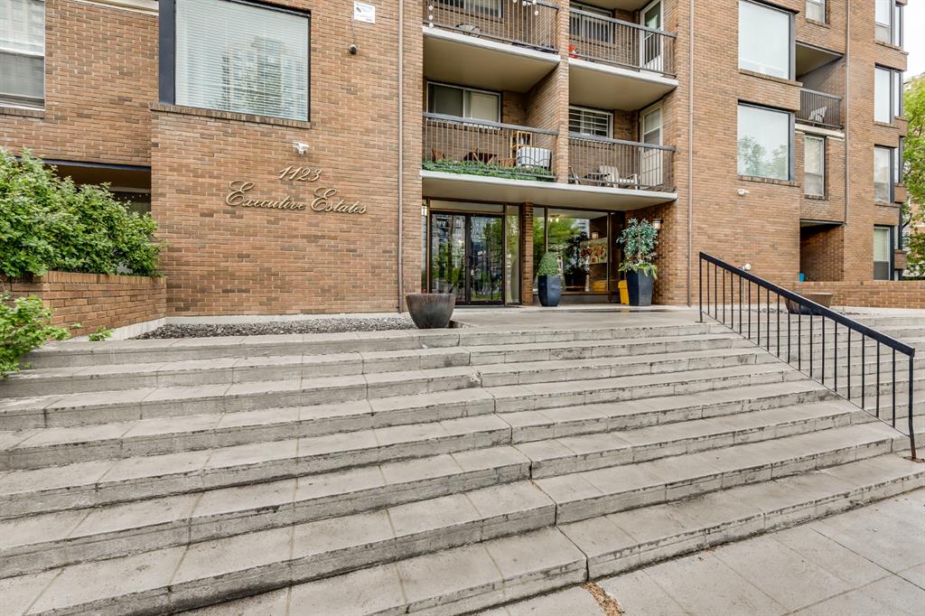 Low-maintenance condo living comes together with an unbeatable inner-city location in this multi-level, 2 bedroom end unit within the well-managed Executive Estates building. Set directly across from Connaught Park and just moments from Calgary’s most energetic entertainment district, everyday life here is surrounded by nightlife, dining, pubs, cafés and an ever-changing mix of local shops. Inside, updated flooring anchors an open and light-filled layout designed to feel spacious and welcoming. The living area is wrapped in a full wall of windows that capture abundant natural light and open onto a sunny south and west facing balcony, extending the living space outdoors. The galley-style kitchen is thoughtfully arranged for both function and flow, featuring stone countertops, full-height cabinetry and a breakfast bar that connects seamlessly with the living room, while the adjacent dining area offers additional space for meals and gatherings. Upstairs, 2 bright and generously sized bedrooms are paired with a full 4-piece bathroom finished with updated stone countertops. In-suite laundry, heated underground parking and a dedicated storage locker add everyday practicality and convenience. The building’s fun and stylish lobby creates a polished first impression and reflects the pride of ownership throughout. Walk or bike downtown, access the river pathways with ease, or enjoy a relaxed stroll along 17th Avenue’s award-winning restaurants and cafés, all before returning home to a quiet, secure building. An ideal opportunity to move in and enjoy vibrant urban living with comfort and ease.