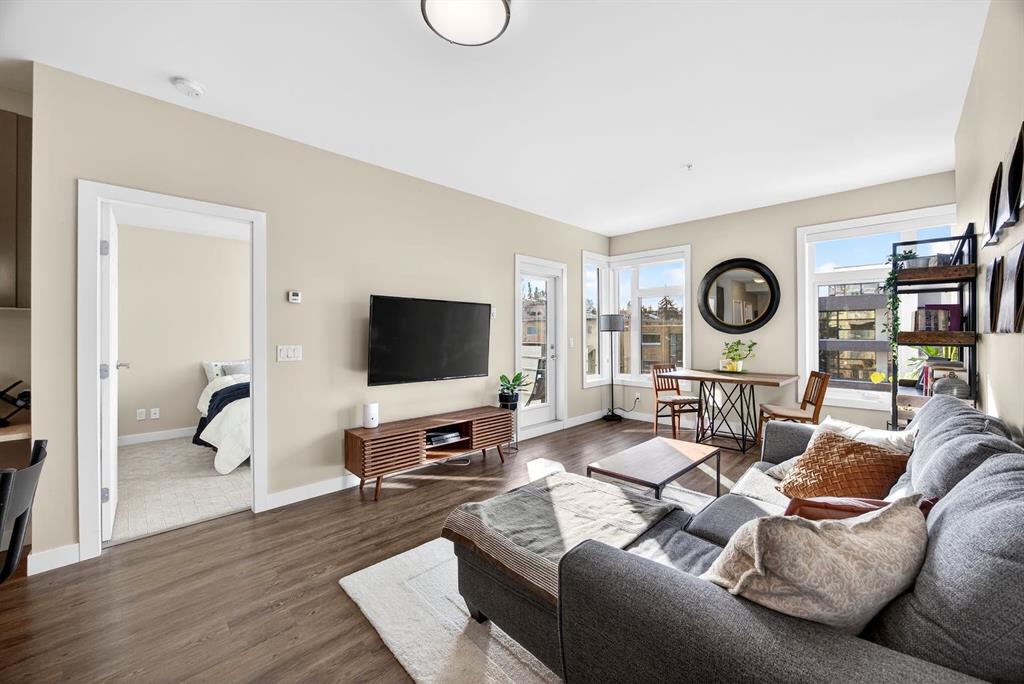 This bright and beautifully maintained 2-bedroom, 2-bathroom condo offers an incredible combination of space, comfort, and walkability in one of Calgary’s most vibrant inner-city communities. As one of the larger units in the building, this home is filled with natural light and features TWO balconies—both west-facing perfect for enjoying the afternoon sun and evening light. Thoughtfully designed for everyday living, the unit showcases an open concept floor plan, ample storage, stainless steel appliances, soft close cabinetry, wide-plank flooring, in-floor heating, and a functional layout that feels both spacious and inviting.