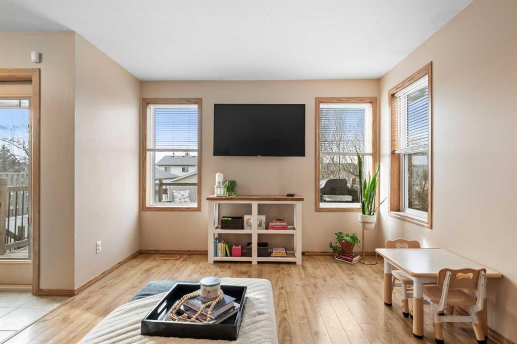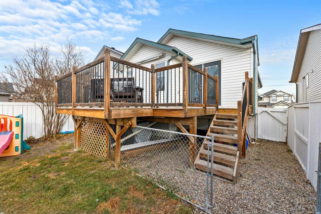 This beautifully maintained 3-bedroom, 2-bath bi-level home blends warmth, functionality, and pride of ownership in every corner. From the moment you step inside, the open-concept layout welcomes you with natural light and an effortless flow that feels both spacious and inviting. Recent updates to elevate this home: new shingles installed in 2025, new soft metals to be installed, new siding on back of home 2025, newer hot water tank, central A/C for year-round comfort, refreshed carpeting and modern laminate flooring, newer appliances, and a beautifully upgraded lower-level bathroom. One of the home’s standout features is the stunning west-facing deck—with French doors opening from the main level—creating a perfect space for evening relaxation and sunset gatherings. The expansive lower-level recreation room offers incredible flexibility—ideal as a cozy family movie lounge, a fun and open play area for kids, 3rd bedroom with egress window or a bright home office setup with a nicely appointed 4-piece bath. Great space for teenagers or guests! Outside, the backyard is both practical and versatile. The storage shed can be relocated to create room for RV parking, and the back lane allows convenient access for a full-size vehicle right up to the home in the single stall. Freshly cleaned carpets and recent paint touch-ups. Fence re-stained summer 2025. Furnace and air conditioning serviced in November and ducts cleaned in the Spring. Nestled in one of Coventry Hills’ most desirable and walkable locations, this property places you steps from five schools, shopping, the public library, Vivo Recreation Centre, a movie theatre, parks, and serene walking paths. Commuting and weekend outings are effortless with quick access to Deerfoot Trail, Stoney Trail, Country Hills Blvd, CrossIron Mills, and the airport. Beautifully cared for, wonderfully located, and full of thoughtful upgrades, this home offers comfort, convenience, and character—a property you truly must see to appreciate.