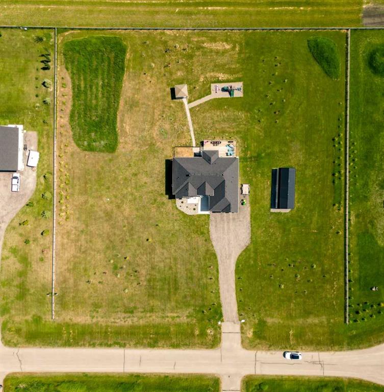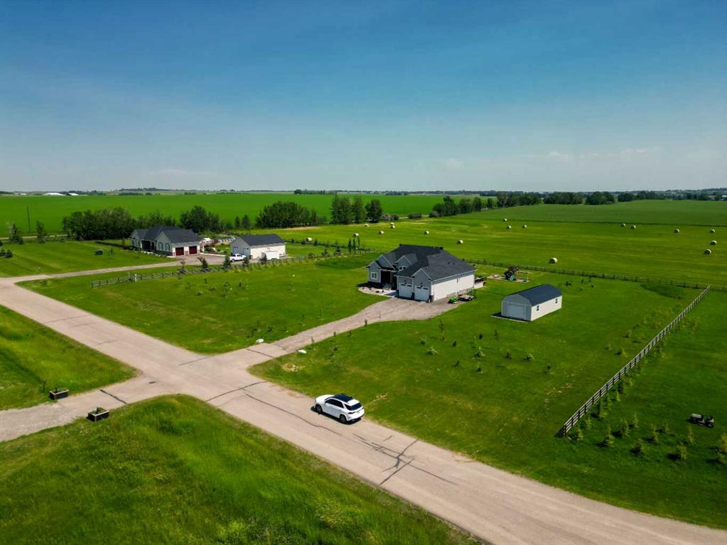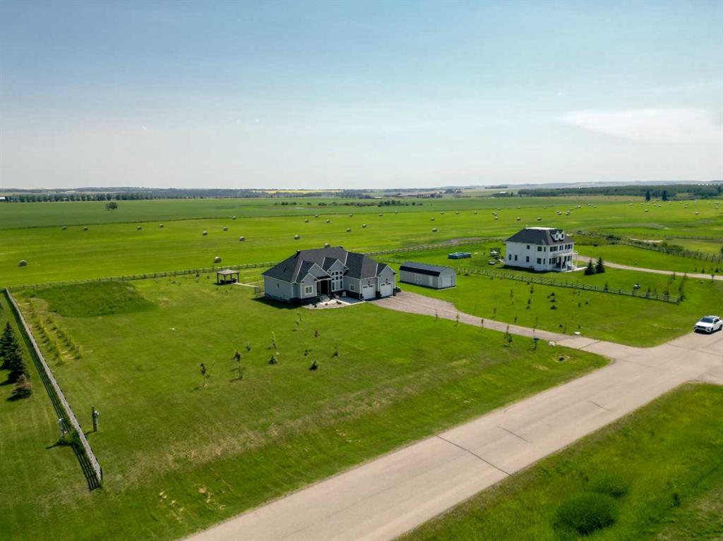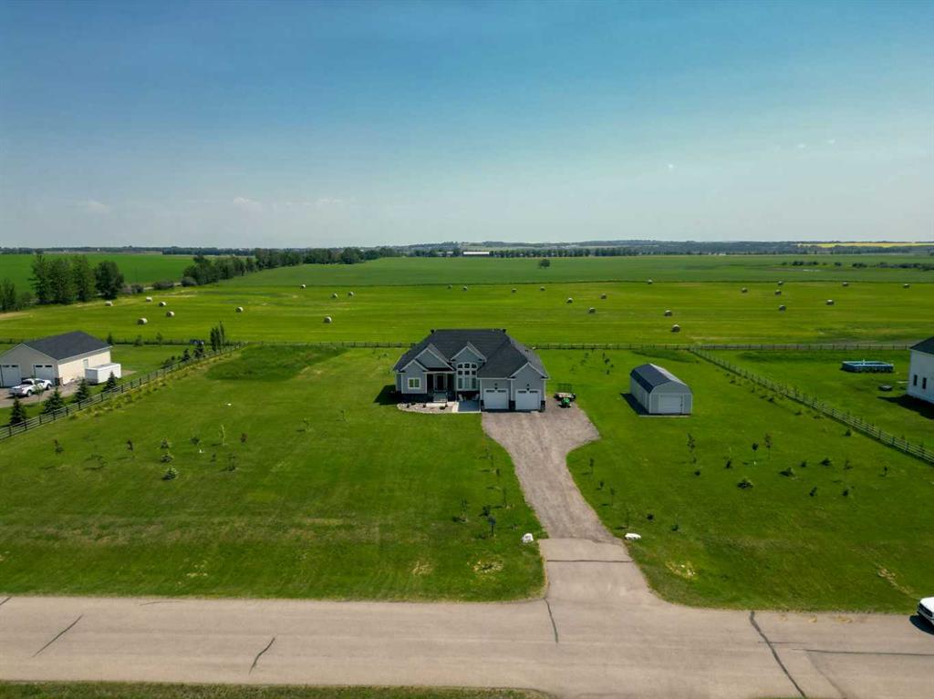 Set within the exclusive cul-de-sac of Fraser Ranch Estates, this custom Frontier Homes build offers over 3,900 sq ft of developed space on 2 acres with unobstructed views of the rural foothills. Meticulously maintained and presenting like new, this property blends refined design with everyday functionality while delivering the privacy and space that define acreage living. Soaring 10’ ceilings and modern finishes elevate the open-concept main floor, where natural light pours through oversized windows and creates a bright, welcoming atmosphere. Entertaining feels effortless in the impressive dining space with grand 12’ ceilings and expansive windows, offering flexibility as an elegant gathering room or airy open den. Relaxation comes naturally in the adjacent living area, anchored by a gas fireplace flanked by built-ins for architectural balance and cozy evenings at home. Culinary creativity is inspired in the beautifully appointed kitchen featuring granite countertops, timeless subway tile, stainless steel appliances, a walk-in pantry for extra storage and a large centre island designed for casual meals and conversation. Seamless access from the breakfast nook to the expansive back deck encourages an indoor-outdoor lifestyle with beautiful foothills views as your backdrop. All 3 main level bedrooms are intentionally arranged, with the primary retreat set apart from the other 2 bedrooms for enhanced quiet and separation. Peaceful mornings begin with private deck access, while a custom walk-in closet and indulgent 5-piece ensuite with dual sinks, deep soaker tub and oversized shower create a true owner’s oasis. The fully finished lower level expands the home’s versatility with a massive rec space easily accommodating media, home gym, play area, hobbies and more, plus 2 additional bedrooms and a stylish 3-piece bathroom. The oversized garage with 2 doors and a long driveway provides generous room for RV and recreational storage, while the massive shed keeps seasonal equipment organized. Mountain views and warm afternoon sun are captured from the west-facing front patio, and the huge back deck is ideal for summer barbecues and evenings spent unwinding while taking in endless foothills scenery. Your landscaping stays protected with the fenced dog run, and expansive grassy areas offer plenty of space for kids to play. Outdoor gatherings feel effortless in the dedicated gazebo area. Located just minutes from De Winton with convenient access to Okotoks, Heritage Pointe and Calgary, this exceptional acreage offers peaceful rural living without compromising daily convenience.