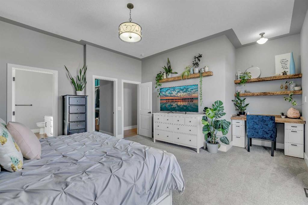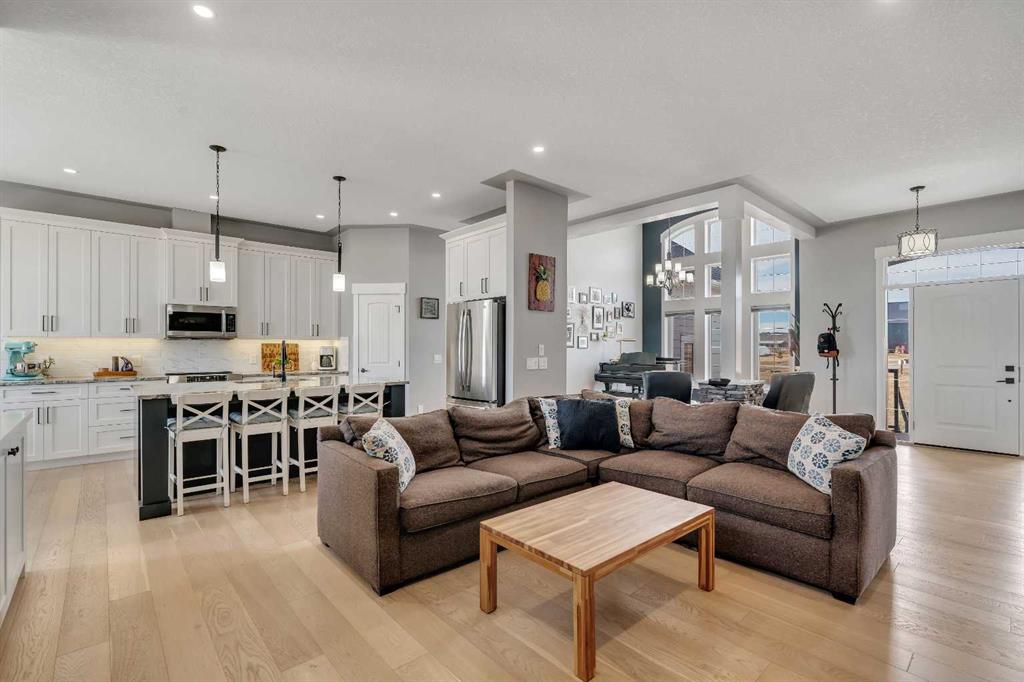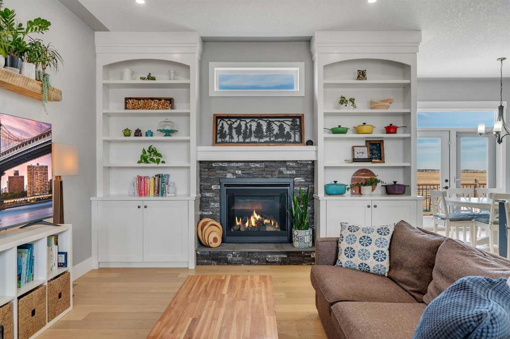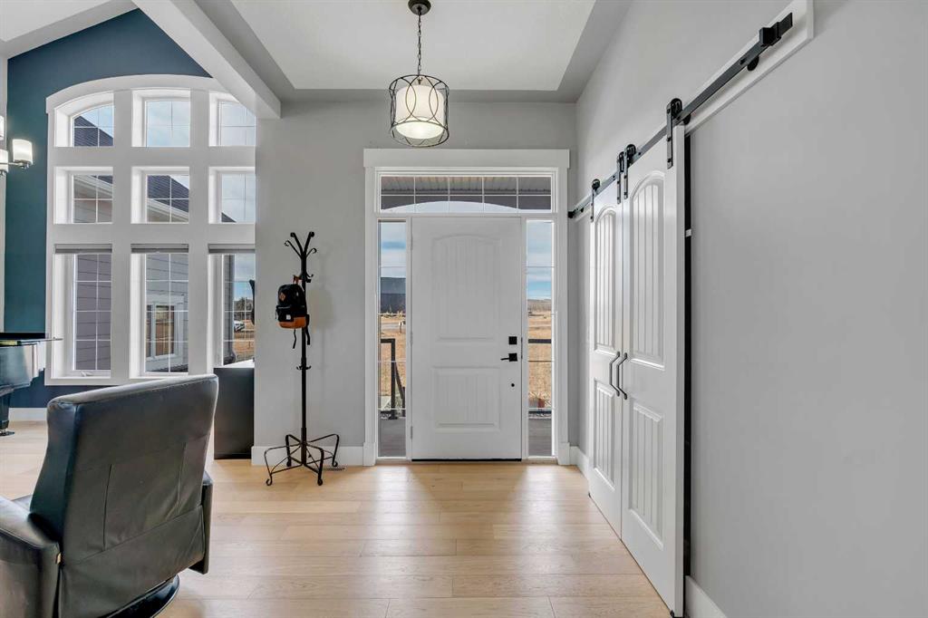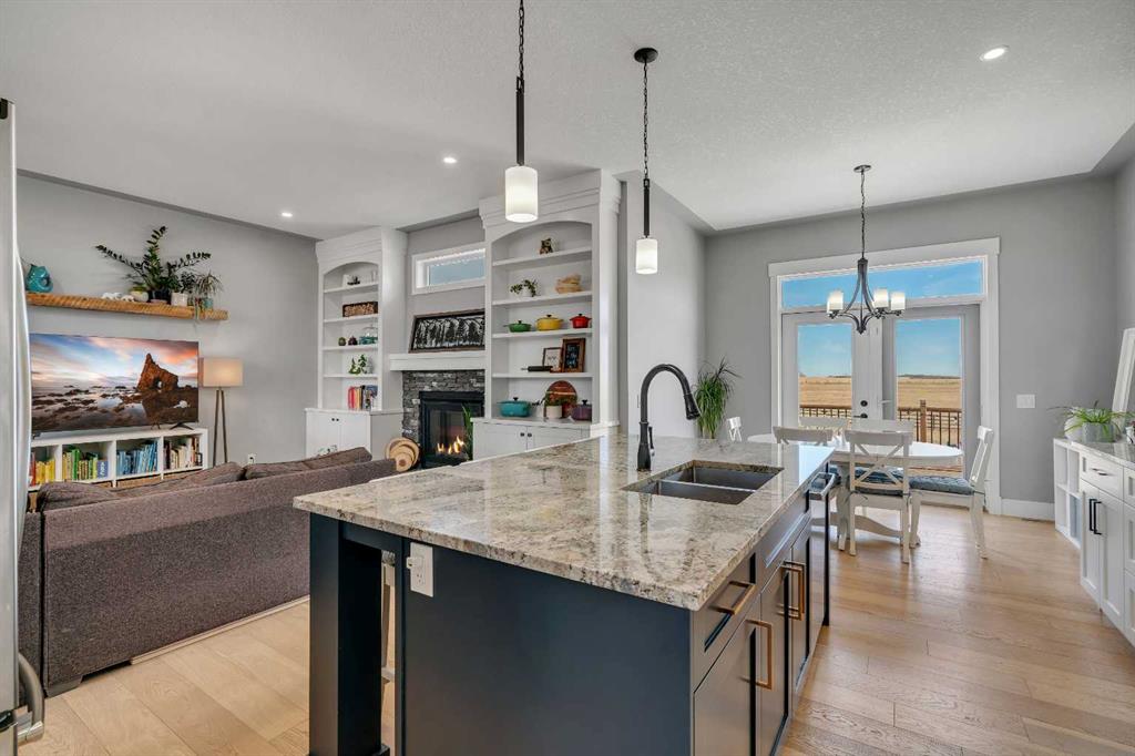 Set within the exclusive cul-de-sac of Fraser Ranch Estates, this custom Frontier Homes build offers over 3,900 sq ft of developed space on 2 acres with unobstructed views of the rural foothills. Meticulously maintained and presenting like new, this property blends refined design with everyday functionality while delivering the privacy and space that define acreage living. Soaring 10’ ceilings and modern finishes elevate the open-concept main floor, where natural light pours through oversized windows and creates a bright, welcoming atmosphere. Entertaining feels effortless in the impressive dining space with grand 12’ ceilings and expansive windows, offering flexibility as an elegant gathering room or airy open den. Relaxation comes naturally in the adjacent living area, anchored by a gas fireplace flanked by built-ins for architectural balance and cozy evenings at home. Culinary creativity is inspired in the beautifully appointed kitchen featuring granite countertops, timeless subway tile, stainless steel appliances, a walk-in pantry for extra storage and a large centre island designed for casual meals and conversation. Seamless access from the breakfast nook to the expansive back deck encourages an indoor-outdoor lifestyle with beautiful foothills views as your backdrop. All 3 main level bedrooms are intentionally arranged, with the primary retreat set apart from the other 2 bedrooms for enhanced quiet and separation. Peaceful mornings begin with private deck access, while a custom walk-in closet and indulgent 5-piece ensuite with dual sinks, deep soaker tub and oversized shower create a true owner’s oasis. The fully finished lower level expands the home’s versatility with a massive rec space easily accommodating media, home gym, play area, hobbies and more, plus 2 additional bedrooms and a stylish 3-piece bathroom. The oversized garage with 2 doors and a long driveway provides generous room for RV and recreational storage, while the massive shed keeps seasonal equipment organized. Mountain views and warm afternoon sun are captured from the west-facing front patio, and the huge back deck is ideal for summer barbecues and evenings spent unwinding while taking in endless foothills scenery. Your landscaping stays protected with the fenced dog run, and expansive grassy areas offer plenty of space for kids to play. Outdoor gatherings feel effortless in the dedicated gazebo area. Located just minutes from De Winton with convenient access to Okotoks, Heritage Pointe and Calgary, this exceptional acreage offers peaceful rural living without compromising daily convenience.