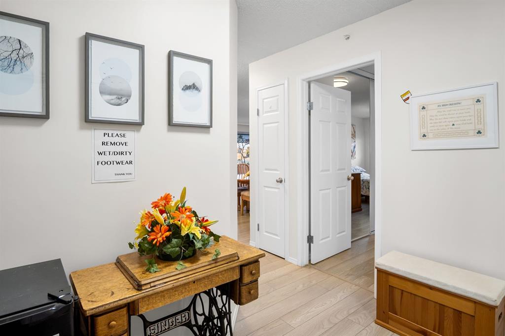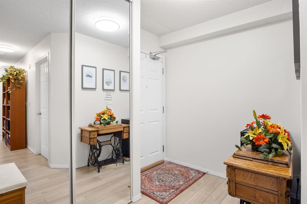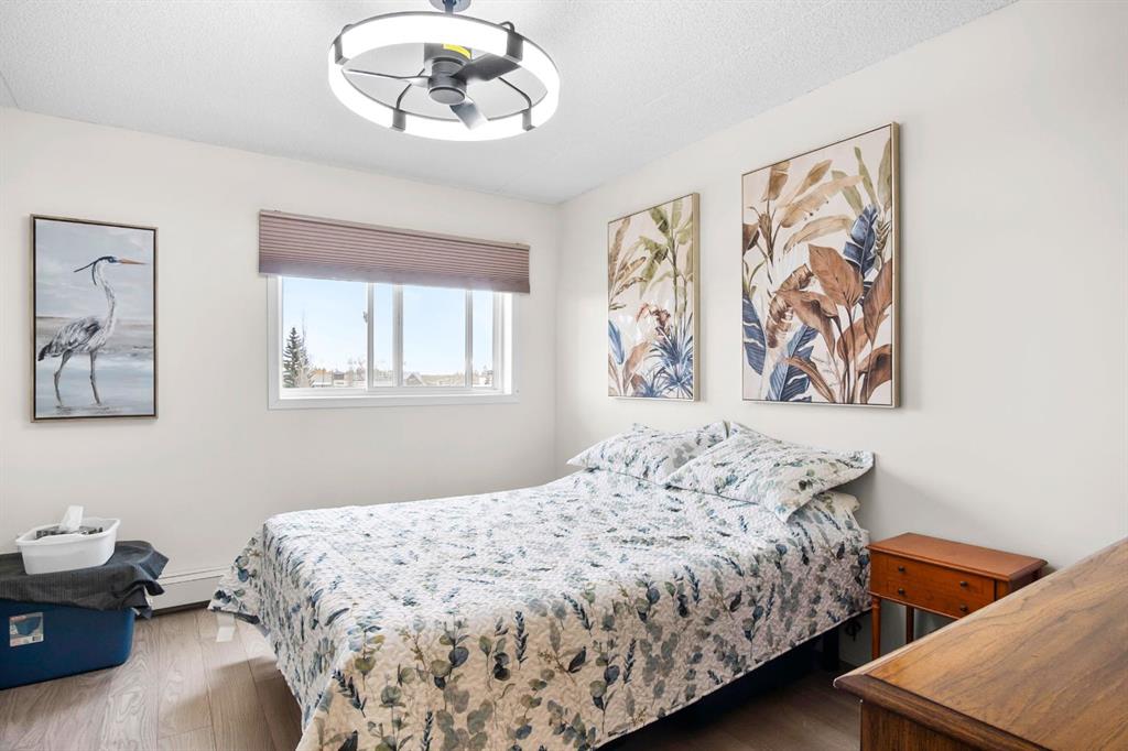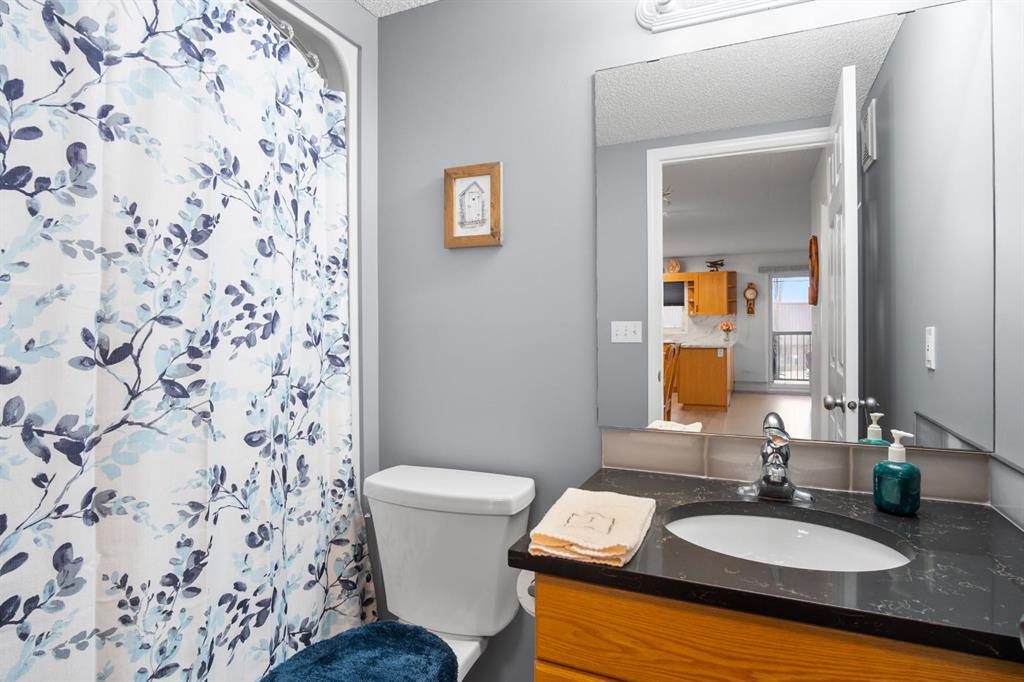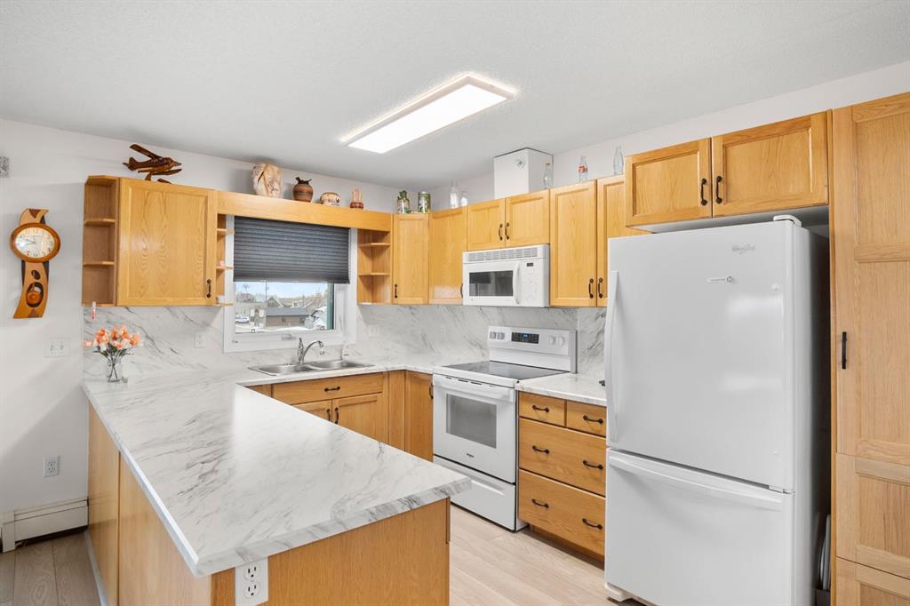 Come home to this 55+, bright, very well located home located in Park Terrace in Olds. This corner unit, with a generous open concept 2 bdrm, 2 bath home features numerous recent upgrades. Upgrades include some fresh paint, and new lighting, new dishwasher and stove, as well as a great in kitchen pantry cupboard. Enjoy your morning coffee watching the sun rise in the East. You will appreciate the tasteful decor, the well designed kitchen featuring a sun filled window over the sink. You will also be thankful for the building design which features concrete slabs between building floors allowing for additional safety measures as well as a quieter home. This building is conveniently located across the street from Olds Sportsplex, easy walk to downtown restaurants and shops, and Centennial Park. Do not delay – this condo will not last!