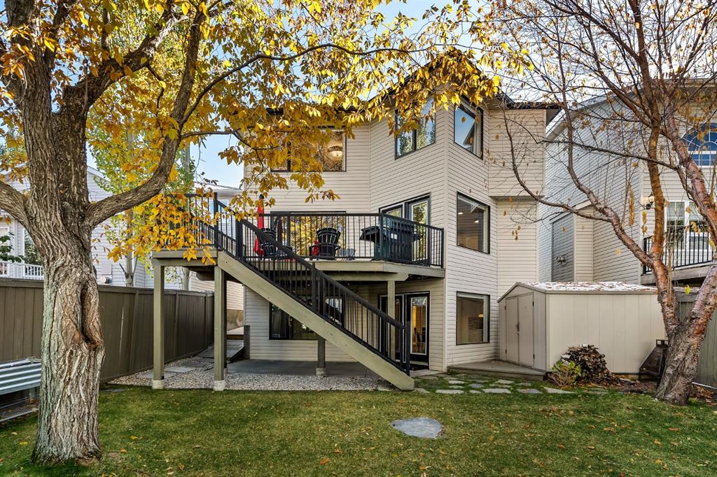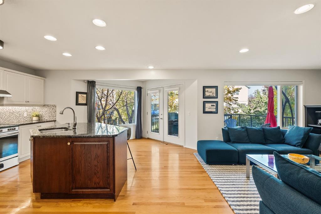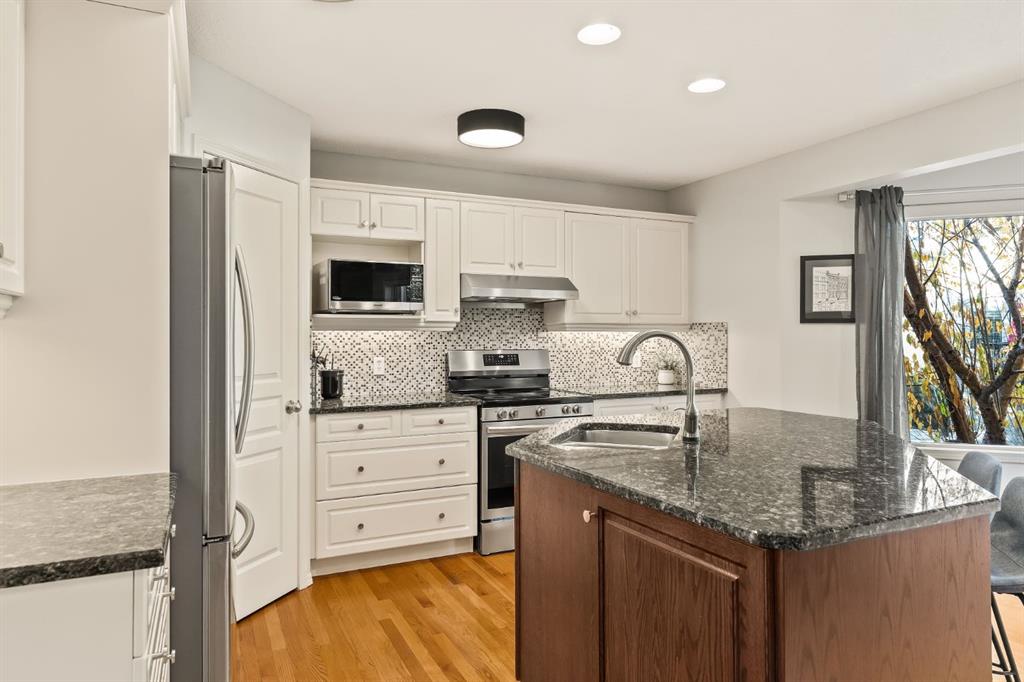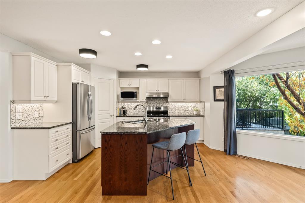 OPEN HOUSE – Sat, Oct 25 (1-3pm) SMART…. really, really SMART! Stepping through the door, the WARMTH of this home will draw you in. The living room sits under a 16’ ceiling at the entrance, a wall of windows harnessing the sun, open to a generous dining space with gleaming oak hardwoods all of which provides an inviting sense of space. The hardwoods lead through the main level to the Great Room in back, COSY & WARM, with wonderful window treatments which bring the volume of trees in back in – COMFORTING. The open concept kitchen enjoys a center island breakfast bar, granite counters and s/s appliances. The Great Room leads directly to your large rear deck, buried in trees, a wonderful retreat following a busy day, a space your friends and family will LOVE! There is also a private den/home office tucked away on the main level too. Upstairs the Primary Retreat is THE CHARM! A large sleeping quarters, a lounge/reading nook, level with the tree canopy in back – CALMING! PLUS… a 4pc en suite and his & hers walk-in closets. The second bedroom up is well-sized and enjoys a 4pc bath to itself. The walkout features a LEGAL SUITE, exceptionally well appointed with a large Great Room/Kitchen/Eating area, two beds, a 4pc bath and separate laundry. This could be a welcome mortgage helper, ready to go, or easily converted to a Rec/Family room with a fabulous wet bar, for your own use. This two storey walkout offers 3,020 sq ft of developed living space, over three levels on a quiet cul de sac in Signal Hill (NO SIDEWALK). A GREAT LOCATION – a short walk to Westhills Shopping Centre – shopping, dining and the movies are a short walk away – great schools, the Westside REC Centre and West LRT and ease of access west or downtown – A GREAT LOCATION! Additional features include two new Hi Eff furnaces in 2023, new garage door in 2025, two hot water tanks, Central A/C, irrigation and a garage insulated, and drywalled with epoxy flooring