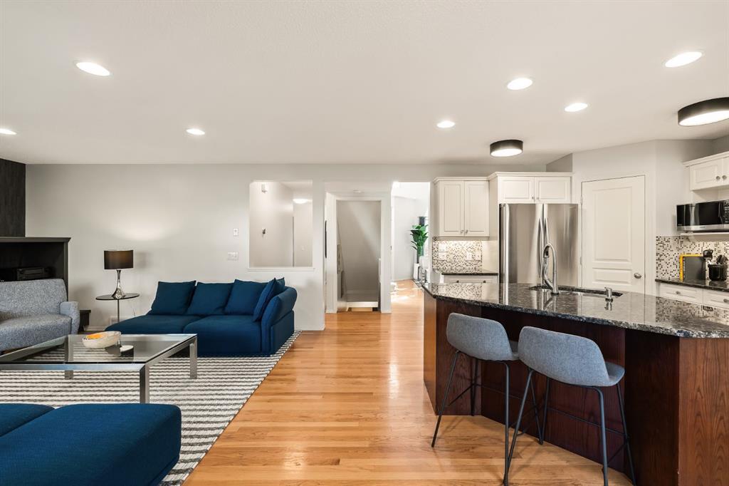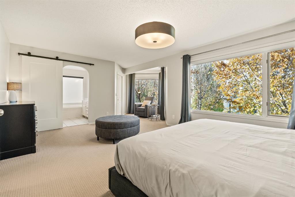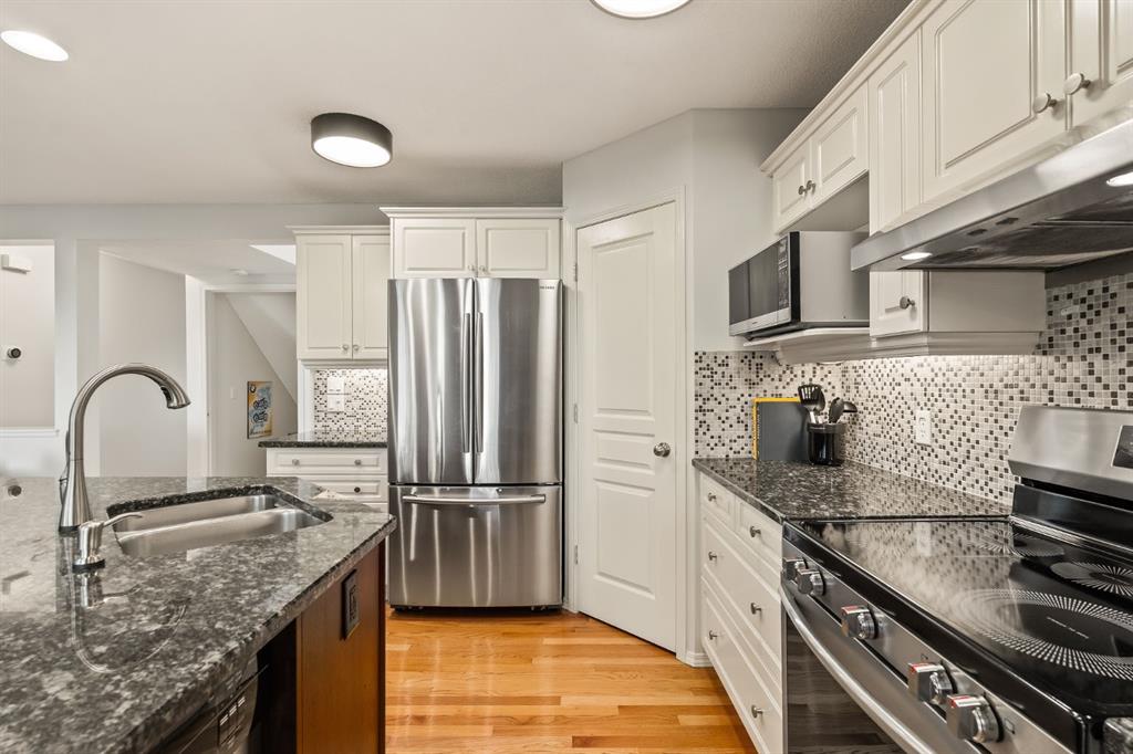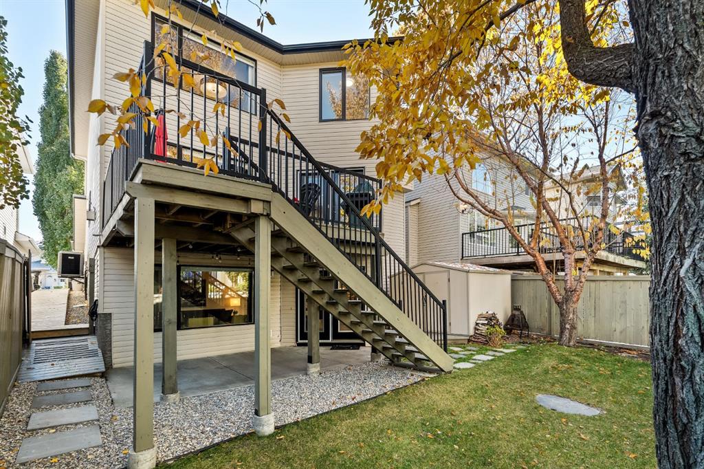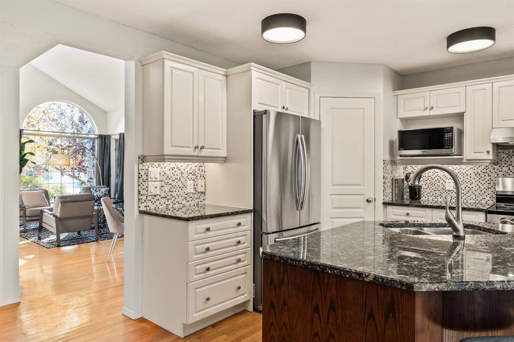 OPEN HOUSE – Sat, Oct 25 (1-3pm) SMART…. really, really SMART! Stepping through the door, the WARMTH of this home will draw you in. The living room sits under a 16’ ceiling at the entrance, a wall of windows harnessing the sun, open to a generous dining space with gleaming oak hardwoods all of which provides an inviting sense of space. The hardwoods lead through the main level to the Great Room in back, COSY & WARM, with wonderful window treatments which bring the volume of trees in back in – COMFORTING. The open concept kitchen enjoys a center island breakfast bar, granite counters and s/s appliances. The Great Room leads directly to your large rear deck, buried in trees, a wonderful retreat following a busy day, a space your friends and family will LOVE! There is also a private den/home office tucked away on the main level too. Upstairs the Primary Retreat is THE CHARM! A large sleeping quarters, a lounge/reading nook, level with the tree canopy in back – CALMING! PLUS… a 4pc en suite and his & hers walk-in closets. The second bedroom up is well-sized and enjoys a 4pc bath to itself. The walkout features a LEGAL SUITE, exceptionally well appointed with a large Great Room/Kitchen/Eating area, two beds, a 4pc bath and separate laundry. This could be a welcome mortgage helper, ready to go, or easily converted to a Rec/Family room with a fabulous wet bar, for your own use. This two storey walkout offers 3,020 sq ft of developed living space, over three levels on a quiet cul de sac in Signal Hill (NO SIDEWALK). A GREAT LOCATION – a short walk to Westhills Shopping Centre – shopping, dining and the movies are a short walk away – great schools, the Westside REC Centre and West LRT and ease of access west or downtown – A GREAT LOCATION! Additional features include two new Hi Eff furnaces in 2023, new garage door in 2025, two hot water tanks, Central A/C, irrigation and a garage insulated, and drywalled with epoxy flooring