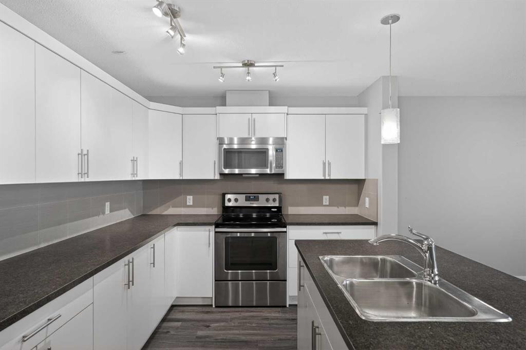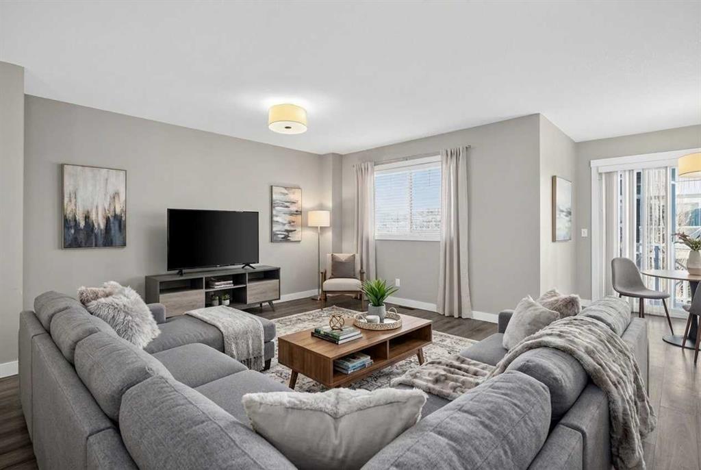 Welcome to Skyview Ranch Grove — a beautifully maintained multi-level townhouse offering modern finishes, smart design, and comfortable everyday living. From the moment you step inside, you’ll notice the pride of ownership and lightly lived-in condition that gives this home the feel of a new build. Contemporary cabinetry, quality flooring, and sleek countertops create a clean, modern aesthetic that’s both stylish and practical. The main living level is thoughtfully designed with an open-concept layout where the living room, dining area, and kitchen flow seamlessly together. High ceilings enhance the sense of space and allow natural light to move freely throughout. Whether you’re entertaining guests or enjoying a quiet evening at home, the layout keeps everyone connected while still feeling spacious and comfortable. The kitchen is generously sized and highly functional, offering ample counter space, modern cabinetry, and excellent ventilation. It’s designed for real life — easy meal prep, everyday organization, and effortless hosting. A built-in Heat Recovery Ventilator (HRV) improves air quality and energy efficiency year-round. Upstairs, you’ll find two well-sized bedrooms that provide flexibility for a variety of needs. The primary bedroom offers a comfortable retreat with plenty of room for a full bedroom set, while the second bedroom works perfectly as a guest room, child’s room, or home office. Two bathrooms help keep daily routines running smoothly. Ideally located near parks, walking paths, K–9 schools including Apostles of Jesus and Prairie Sky School, and major amenities such as CrossIron Mills and the airport, this home offers convenience without sacrificing comfort. Modern, functional, and move-in ready — a perfect fit for first-time buyers, young families, or investors looking for quality in a growing community.