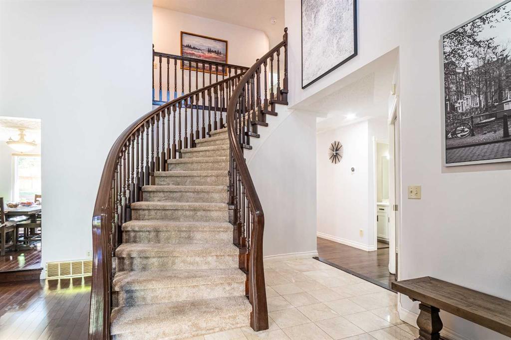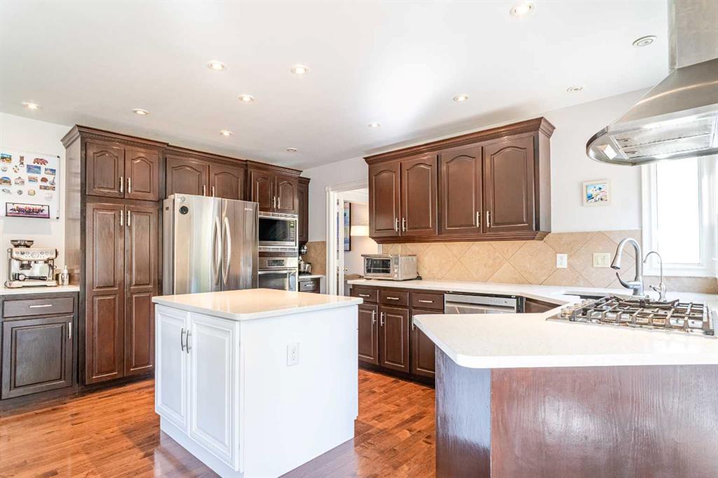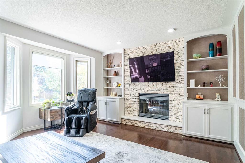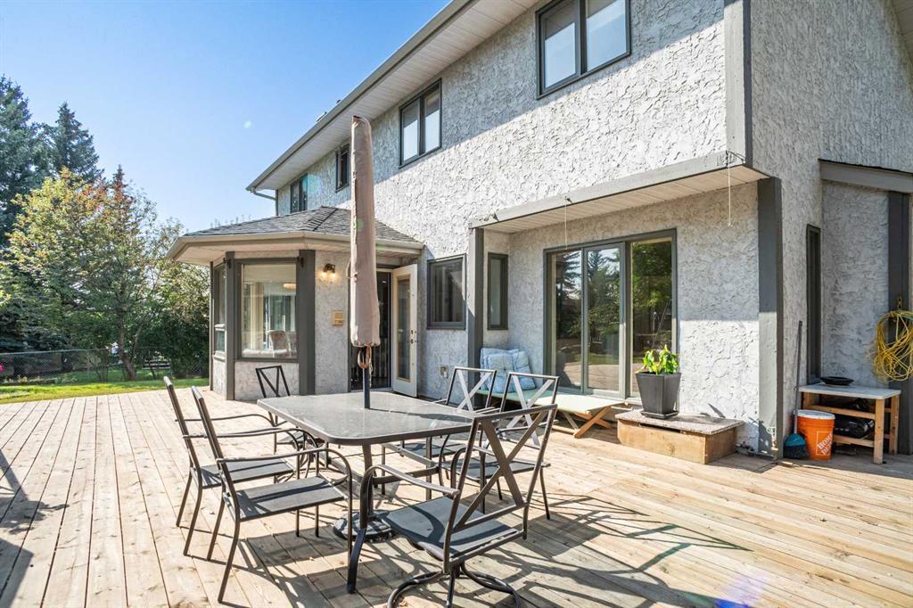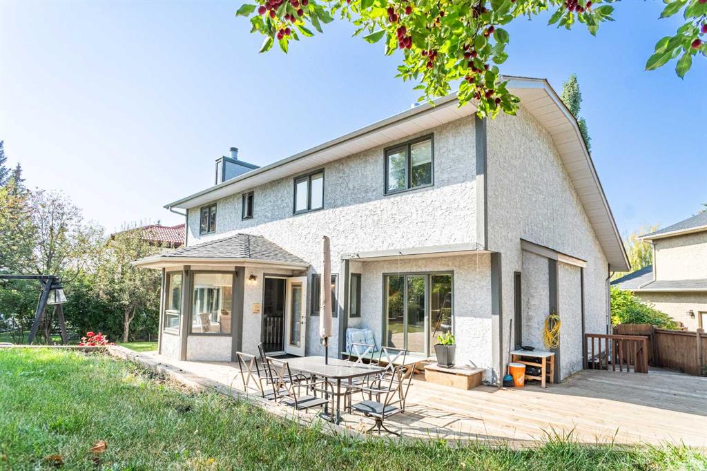 This exceptional 4-bedroom executive residence sits proudly on a massive pie-shaped lot with a rare triple garage, offering the perfect blend of elegance, comfort, and location. Inside, you’ll find gleaming hardwood floors, granite countertops, a main floor den, formal living and dining rooms, plus a spacious master retreat designed for relaxation. The fully developed basement provides even more living and entertaining space, while the expansive deck overlooks your beautifully treed, fenced backyard—an outdoor oasis for family and friends. Recent upgrades add peace of mind, including a new roof (2022) and furnace & A/C (2021).Just steps from the trails and beauty of Fish Creek Park, this home is the perfect balance of nature and convenience. Built for families who love to entertain and live in style—this one won’t last!