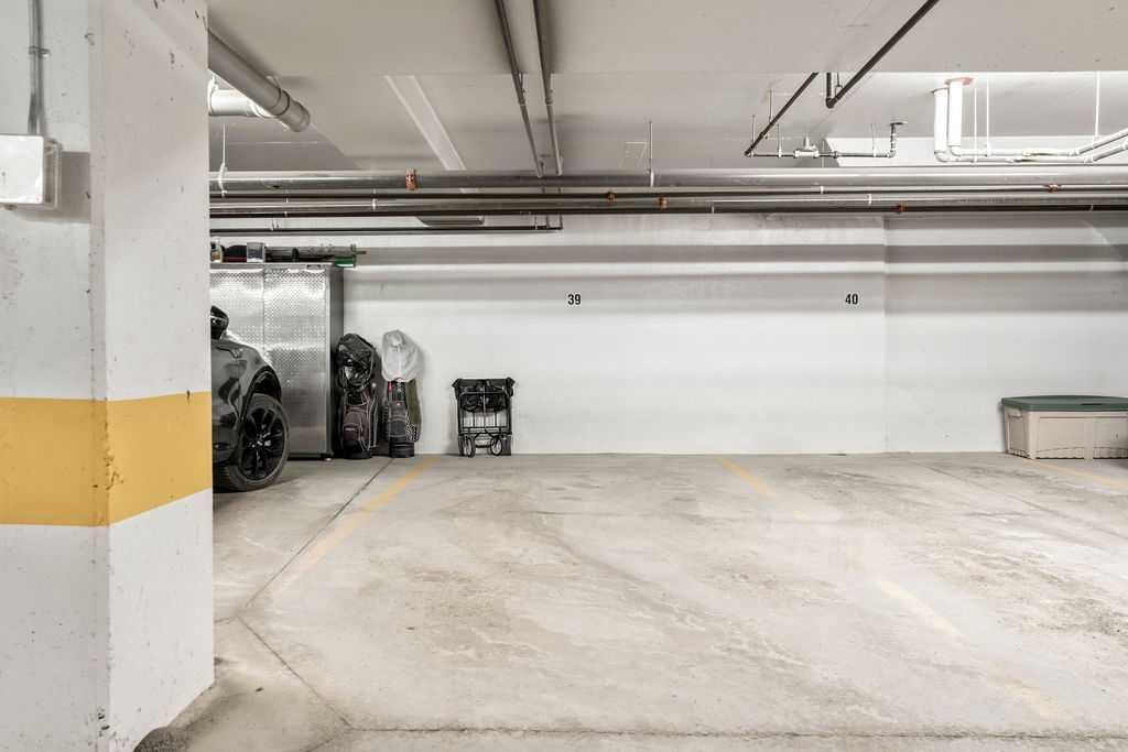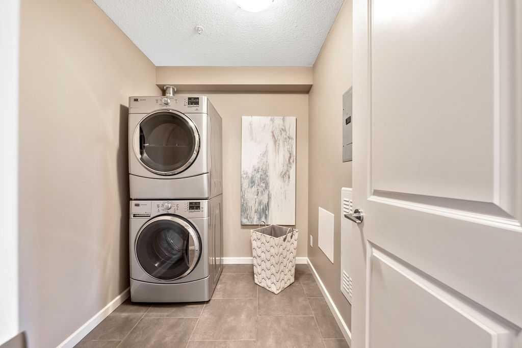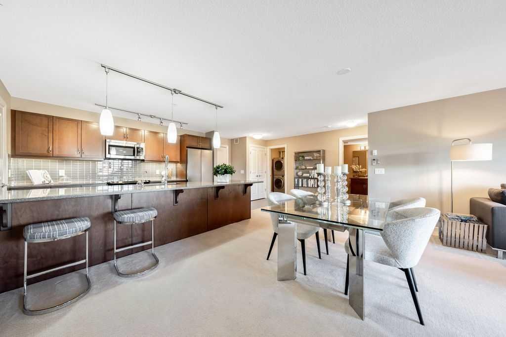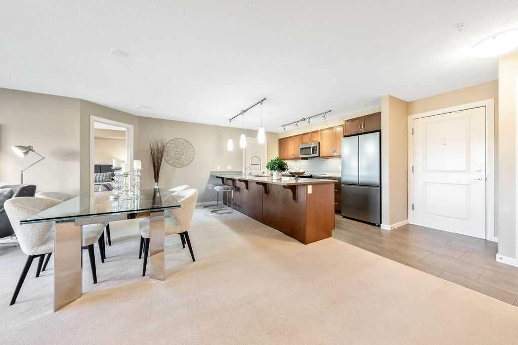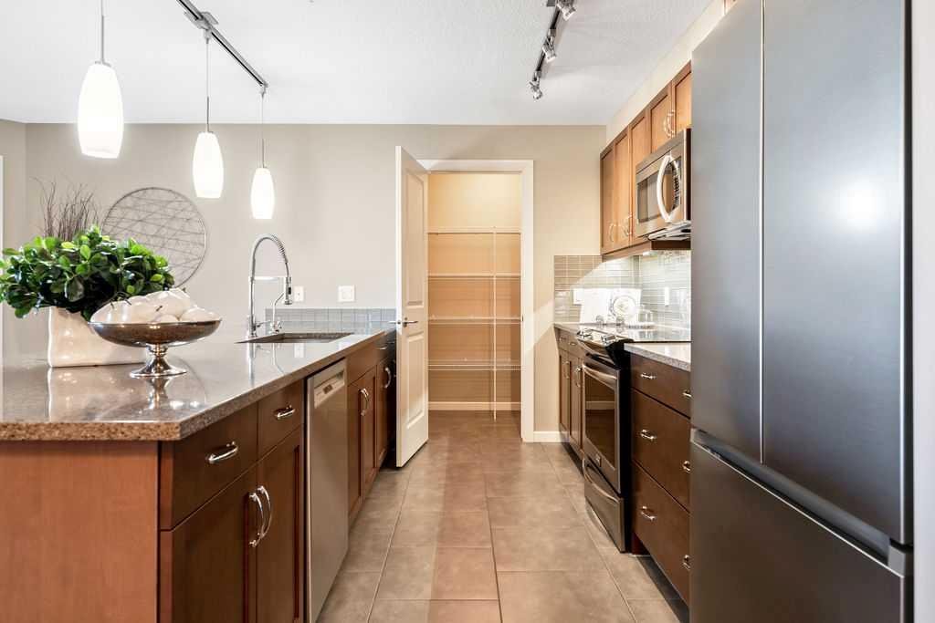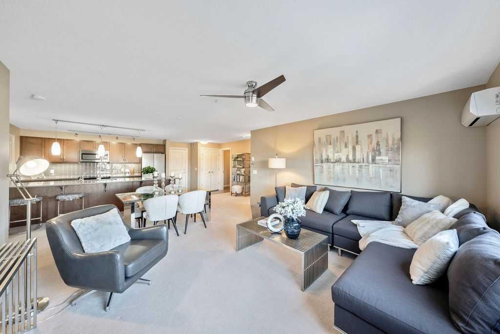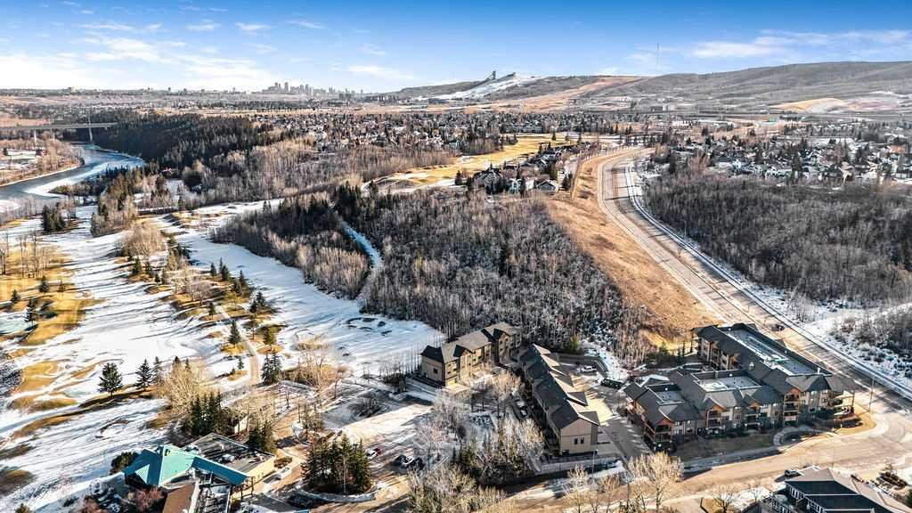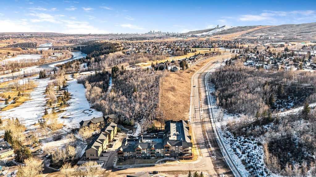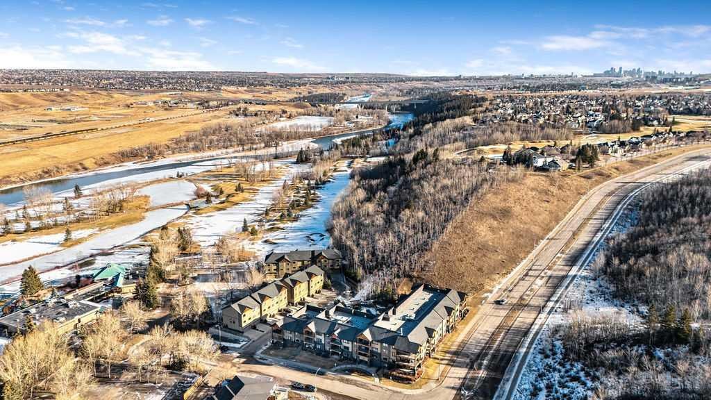 OPEN HOUSE SATURDAY JANUARY 24TH 1-3 PM. This beautifully maintained third-floor residence offers a rare blend of serenity, space, and thoughtful design within an intimate, adult-oriented (18+) building known for its strong governance and exceptional reserve fund. Inside, natural light pours through expansive windows, illuminating a well-considered floor plan that balances openness with privacy. The kitchen is both elegant and functional, anchored by stone countertops, stainless steel appliances (including a brand-new refrigerator), an oversized breakfast bar, under-cabinet lighting, a reverse-osmosis water system, and a generously sized pantry. It flows seamlessly into a dining area designed to comfortably host gatherings both casual and refined. The living room is spacious and inviting, and gives direct access to the balcony, an outdoor extension large enough for a BBQ and lounge seating, where peaceful nature views and visiting wildlife become part of daily life. The primary suite offers a calm and restorative escape, complete with a walk-through double-sided closet and a private ensuite with additional linen storage. A well-proportioned second bedroom and a substantial four-piece main bath, also featuring extra storage, provide flexibility for guests, hobbies, or a home office. Completing the interior is a massive in-unit laundry room, a rare and highly practical feature. Comfort is elevated year-round with air conditioning, while convenience is enhanced by two titled parking stalls (one underground, one surface) and a titled storage locker located on the same floor as the unit. Beyond the home, residents enjoy a beautifully appointed lobby and vibrant community amenities including a gazebo with outdoor gathering area – often the backdrop for weekly happy hours and social gatherings. Moments from the river pathways, Valley Ridge Golf Course, COP, and with effortless access to Stoney Trail and the mountains, this is a lifestyle defined by ease, connection, and quiet sophistication. Private, peaceful, and impeccably cared for, this is Valley Ridge living at its finest.