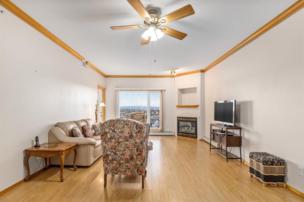 Welcome to one of the largest units in the sought-after Sierras of Tuscany, a vibrant 55+ community offering resort-style amenities and breathtaking and mountain ravine views. This bright, west-facing condo features 2 bedrooms PLUS A LARGE DEN, 9-foot ceilings, elegant crown moldings, and a cozy fireplace—creating an inviting atmosphere you’ll love coming home to.