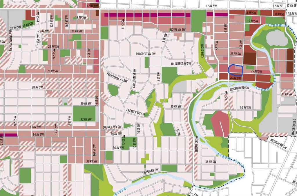 walking/cycling path system. Four houses with 100 ft of frontage 306,308,310,312 – 25 ave sw that have to be all purchased together. The city has recently changed ( LAP )and allows for up to 12 stories to be built. Potential buyer will need to rezone to align with the LAP. Local Area Plan Dashboard