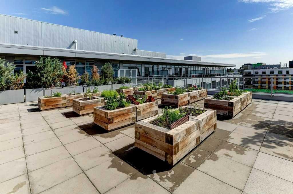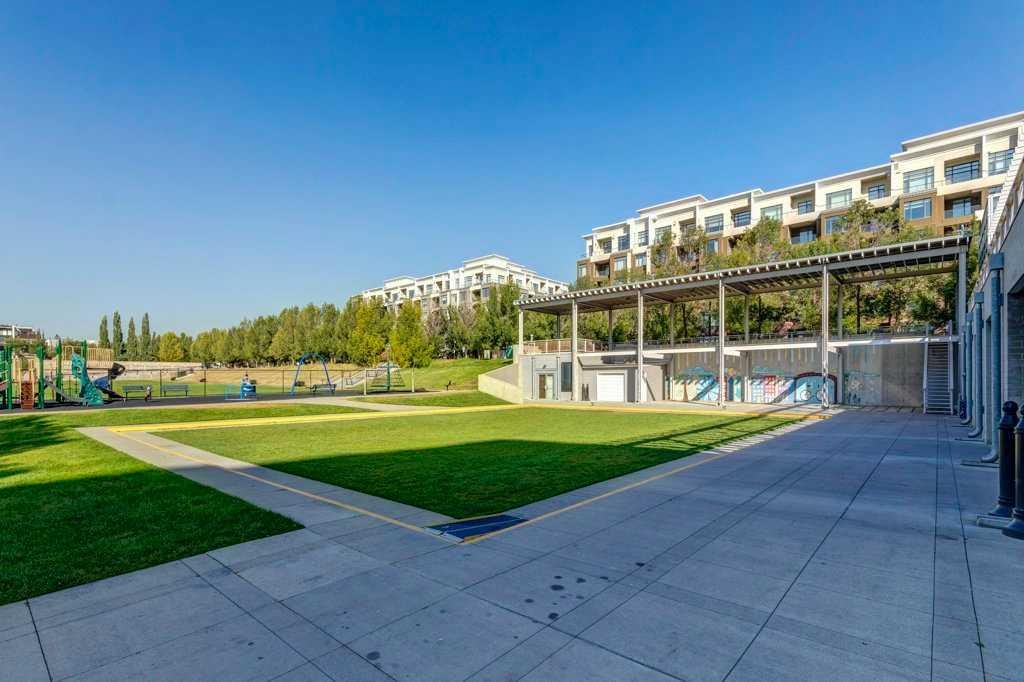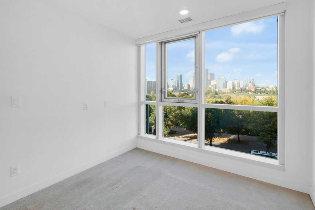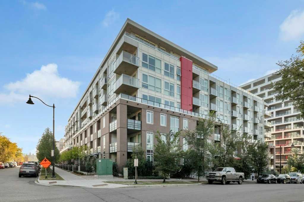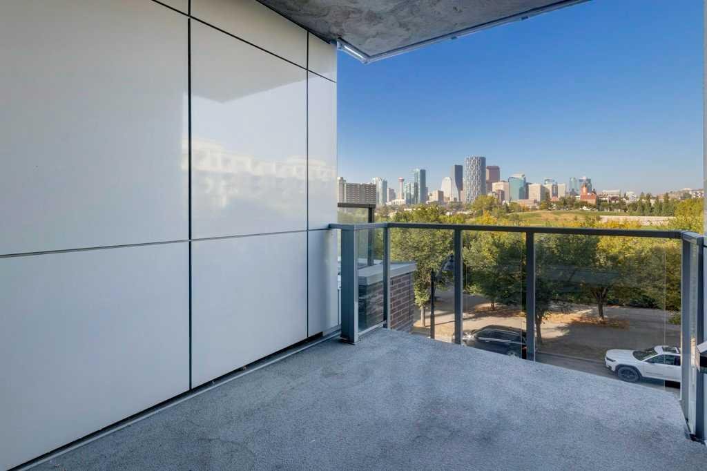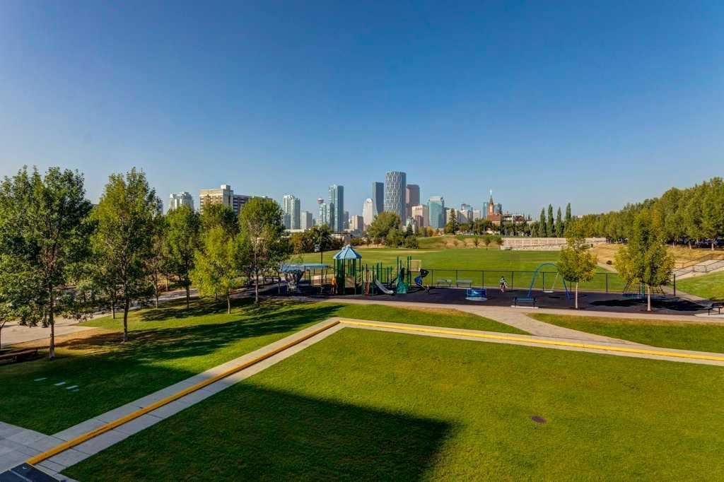 Welcome to Radius in Bridgeland, a modern, trendy, concrete, pet-friendly building! This west-facing 2 bedroom, 2 bathroom condo offers 634 sq ft of modern living space and features an unobstructed view of Murdock Park across the street and downtown view! Thoughtfully designed condo with open-concept living. The kitchen features modern cabinetry, quartz countertops, breakfast bar seating and sleek premium stainless steel appliances including a gas cooktop. Private balcony facing Murdoch Park with BBQ gas hook-up Bright, west-facing primary bedroom with ensuite bathroom, and 2nd bedroom with it’s own bathroom across the hall. Vinyl plank flooring through main living space and 2nd bedroom, carpeted primary bedroom, and tiled bathroom floors. In-suite laundry, underground titled parking stall and an assigned storage locker included. Radius is a LEED Platinum–certified, concrete building built by Bucci withs many amenities including daytime concierge, several fitness facilities including 2 gyms, bike studio, & yoga studio, massive rooftop patio with gardens and modern furniture, bike storage room, bike workshop, dog wash & grooming area, and car wash. Steps to parks, pathways, shops, transit and all that Bridgeland has to offer, this is the perfect blend of inner-city living and trendy living space. Very well run stylish building in a great urban location check this one out! Up to 2 pets allowed with no size restriction!