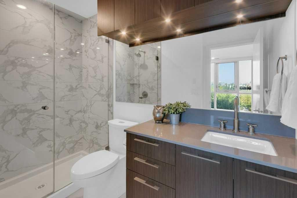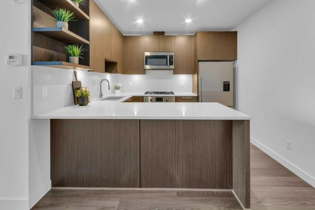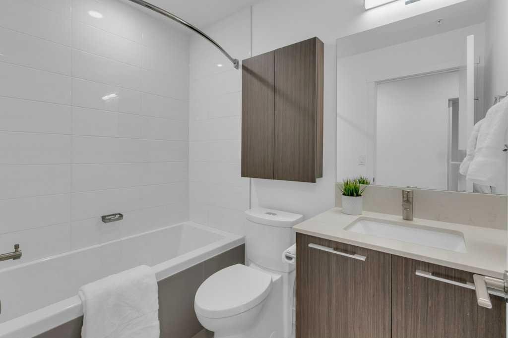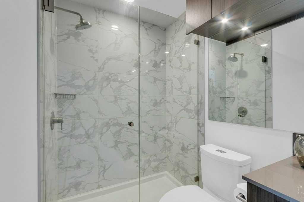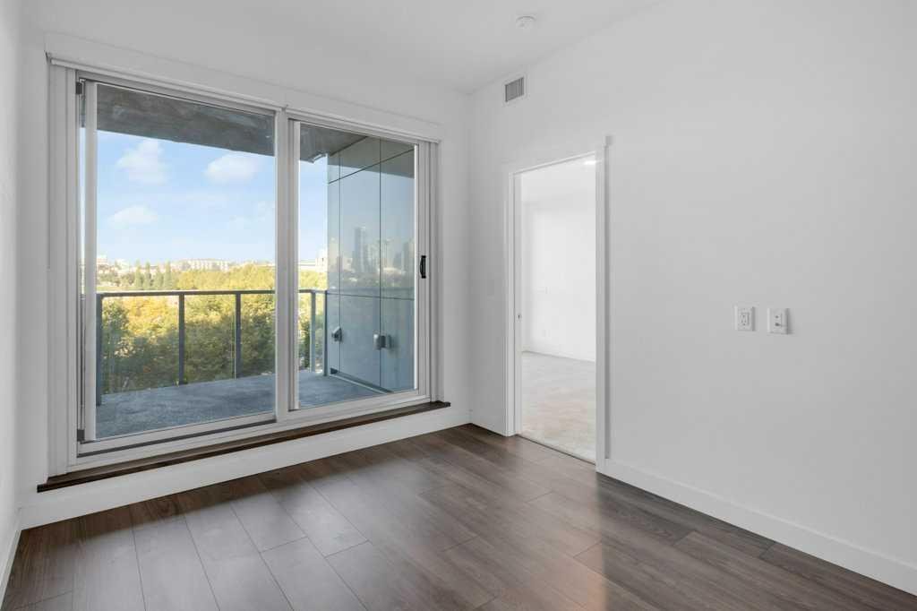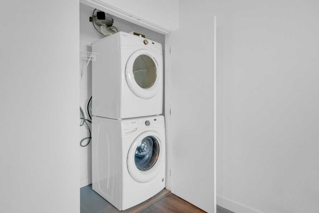 Welcome to Radius in Bridgeland, a modern, trendy, concrete, pet-friendly building! This west-facing 2 bedroom, 2 bathroom condo offers 634 sq ft of modern living space and features an unobstructed view of Murdock Park across the street and downtown view! Thoughtfully designed condo with open-concept living. The kitchen features modern cabinetry, quartz countertops, breakfast bar seating and sleek premium stainless steel appliances including a gas cooktop. Private balcony facing Murdoch Park with BBQ gas hook-up Bright, west-facing primary bedroom with ensuite bathroom, and 2nd bedroom with it’s own bathroom across the hall. Vinyl plank flooring through main living space and 2nd bedroom, carpeted primary bedroom, and tiled bathroom floors. In-suite laundry, underground titled parking stall and an assigned storage locker included. Radius is a LEED Platinum–certified, concrete building built by Bucci withs many amenities including daytime concierge, several fitness facilities including 2 gyms, bike studio, & yoga studio, massive rooftop patio with gardens and modern furniture, bike storage room, bike workshop, dog wash & grooming area, and car wash. Steps to parks, pathways, shops, transit and all that Bridgeland has to offer, this is the perfect blend of inner-city living and trendy living space. Very well run stylish building in a great urban location check this one out! Up to 2 pets allowed with no size restriction!