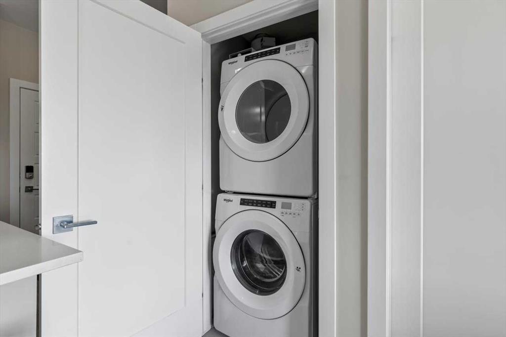 You’ll also enjoy the convenience of in-suite laundry with a stacked washer and dryer. Step outside to your large private patio with a BBQ gas hookup — perfect for morning coffee or summer evenings. Additional features include 9-foot ceilings and a separate storage locker for all your extras.