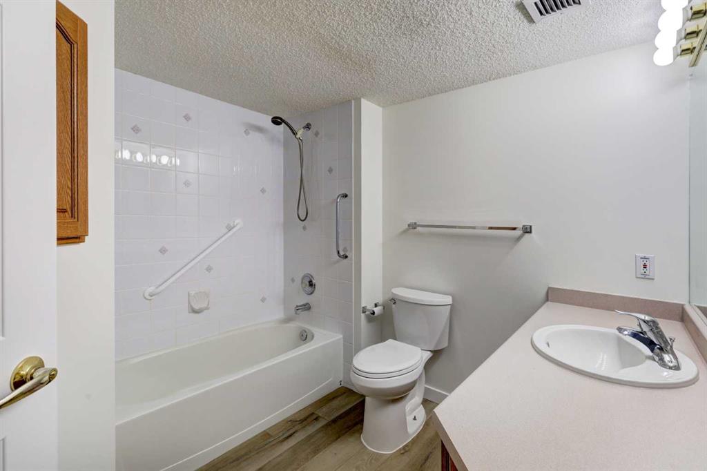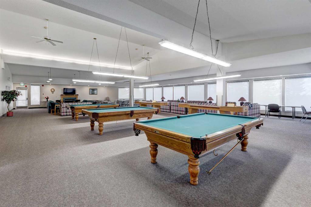 An adult-living condo which offers a vibrant, maintenance free lifestyle. Welcome to this bright, open-concept floor plan in a desirable, quiet location overlooking a park. Filled with natural light and sunshine from the west. The spacious layout includes a large primary bedroom complete with own 2 pc ensuite, along with additional 4 pc bathroom, large laundry room, functional kitchen, large dining and living room with access to a nice size SW facing balcony with gas line for bbq. Additional highlights include new vinyl flooring, baseboards, and fresh paint throughout, secured underground titled parking stall and assigned storage room. This community is truly lifestyle-focused with clubhouse, a billiards room, shuffleboard, recreation room with fully equipped kitchen, perfect for group dining and events, woodworking shop, library and more. Guests coming to town? There are 3 guest suites available, walking paths, a pond with water fountain and beautiful landscaping. whether you are social or love quiet time surrounded by nature, there is something for everyone. A home with all the amenities and close to shopping and dining. A wonderful place to call home!!!