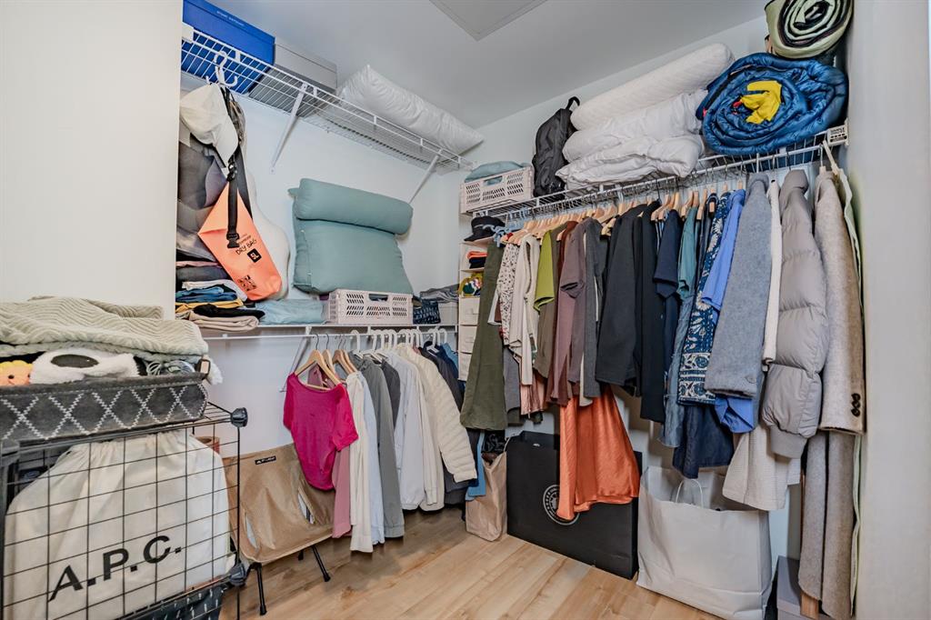 bedroom. Behind a sliding barn door, you will find a large walk-in