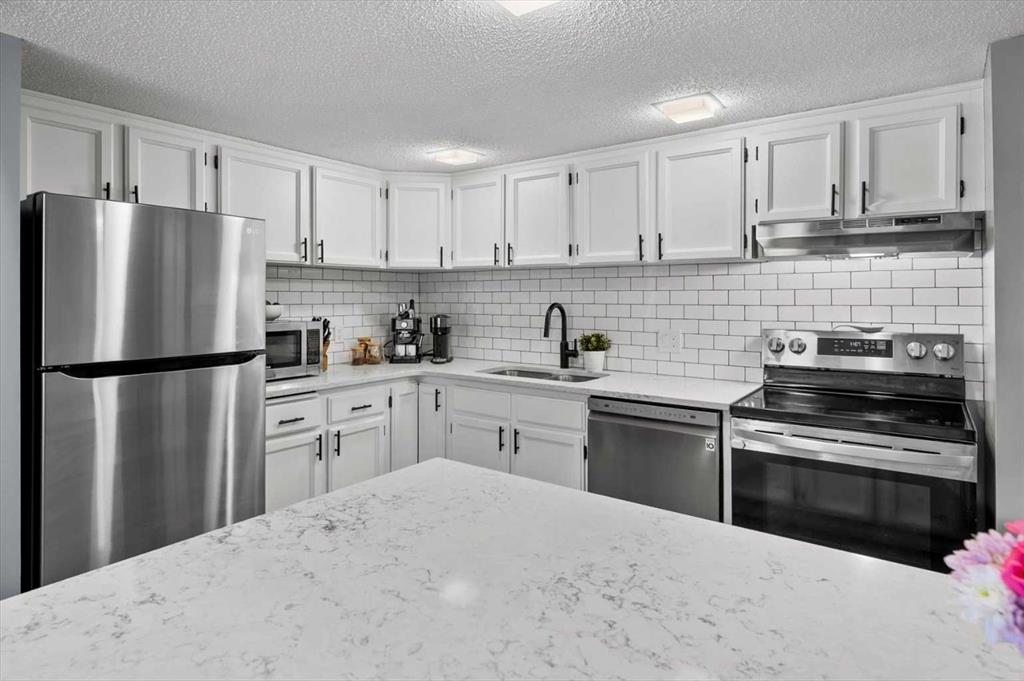 With 2 full bedrooms and 1.5 bathrooms, the layout feels anything but typical, offering separation where you want it and connection where it matters. The heart of the home, a refreshed kitchen, was tastefully updated in 2021 with new stainless steel appliances, tile flooring, quartz countertops, and a modern backsplash, creating a clean, contemporary space to cook, gather, and unwind. That same year, both bathrooms were elevated with updated vanities and fresh finishes, giving a cohesive, move-in-ready feel throughout.