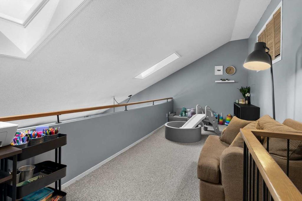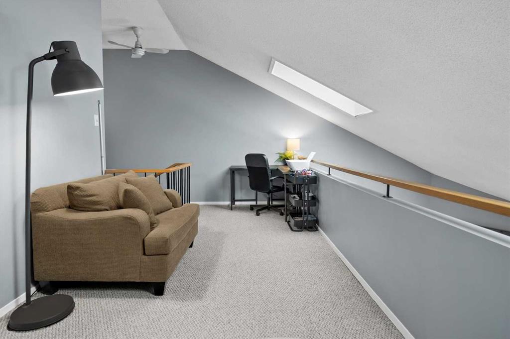 Upstairs, new vinyl flooring (2024) adds warmth and durability to the bedrooms, while above it all, a bright loft space steals the show! Kissed by natural light and ideal for a home office, creative studio, or quiet reading retreat. Enjoy beautiful natural light that is generously provided by the Skylights; a unique feature that’s not found in every unit. These skylights conveniently open with a crank to invite in fresh air and offer a natural way to cool the home during Calgary’s sun-filled summers.