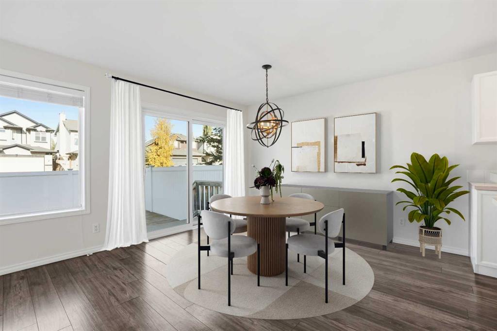 Step inside to find fresh paint throughout and brand-new flooring, creating a bright and inviting atmosphere from the moment you enter. The open-concept main floor features a spacious living area filled with natural light, a well-appointed kitchen with an island and corner pantry, and a dining area that opens onto your private patio and west-facing yard — perfect for morning coffee or summer BBQs.