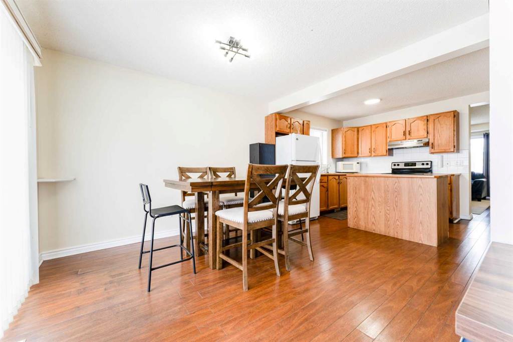 Welcome to this charming and well-maintained 2-storey home offering a total of 1,736 sq. ft. of developed living space, including a fully finished basement—perfect for growing families or savvy buyers looking for space and comfort. The main floor (559+ sq. ft.) features a bright and functional layout designed for everyday living and entertaining. Enjoy a spacious kitchen (approx. 184 sq. ft.) with plenty of cabinetry and counter space, seamlessly flowing into a generous dining area—ideal for family meals and gatherings. The cozy living room (approx. 164 sq. ft.) offers a warm and inviting space to relax, while a convenient 2-piece bath completes the main level. Upstairs, the second floor (536+ sq. ft.) offers 3 well-proportioned bedrooms, including a comfortable primary bedroom (approx. 133 sq. ft.), along with two additional bedrooms—perfect for kids, guests, or a home office. A full 4-piece bathroom serves the upper level, providing both functionality and convenience. The fully developed basement (488+ sq. ft.) adds incredible value, featuring a large recreation room (over 260 sq. ft.)—ideal for movie nights, a play area, or entertaining space. There’s also a 3-piece bathroom and a generously sized laundry area, making this lower level both practical and versatile. Step outside and fall in love with the huge pie-shaped lot, offering a beautiful backyard oasis. Enjoy a stunning garden with few trees and vibrant perennials—perfect for relaxing, gardening, or entertaining. The patio area is ideal for summer BBQs with family and friends or simply unwinding with a book surrounded by nature. Major updates add even more value and peace of mind, including a brand new furnace and a hot water tank replaced in January 2026, ensuring efficiency and reliability for years to come. This home shows true pride of ownership—very well maintained and in mint condition, move-in ready for its next owners. Located in a quiet, family-friendly neighborhood, yet just minutes from schools, restaurants, coffee shops, groceries, and everyday amenities. Enjoy quick and easy access to Vivo Leisure Centre, Deerfoot Trail, Stoney Trail, Calgary International Airport, CrossIron Mills, and downtown—making commuting and daily errands effortless. Very affordable and offering exceptional value! Why settle for a townhouse when you can own a fully detached home—often for the same price or even better? So, don’t miss this rare opportunity to own a detached home with this much space, value, and location—book your showing today!