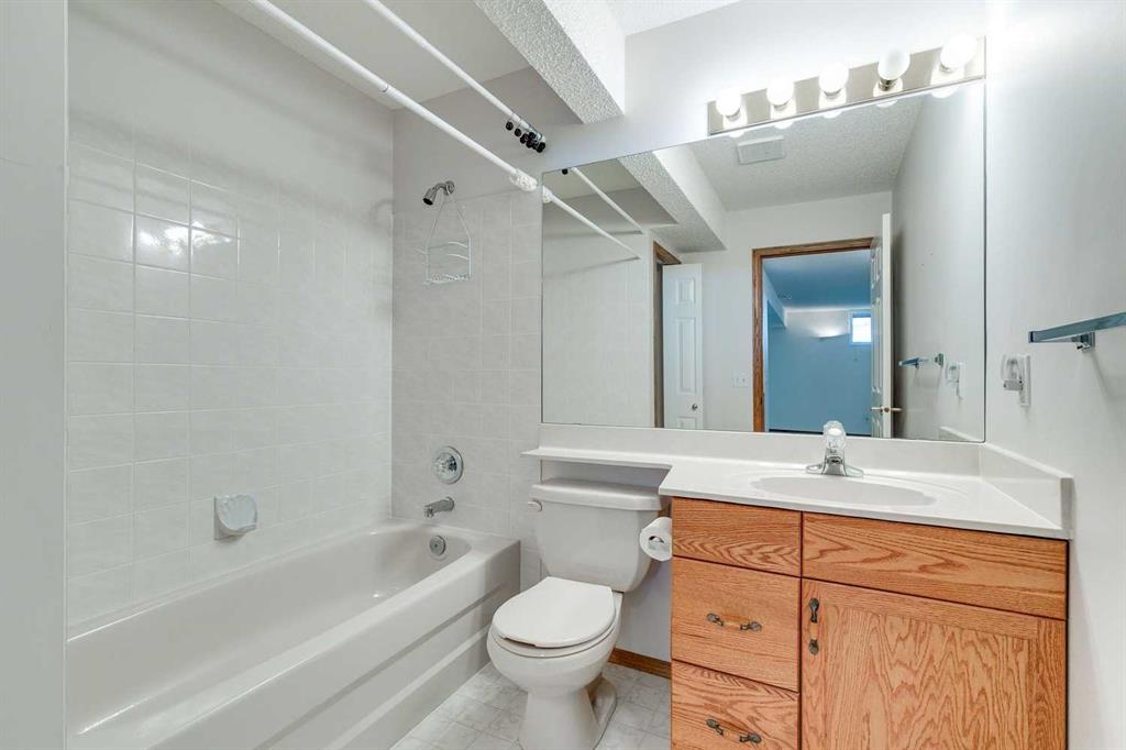 Ready to down size, want ONE level living with the freedom to Lock & Leave. Let someone else cut the grass and shovel the snow. Welcome to Village Park, an 18+ Adult villa complex with plans to Transition to 55+ in 2032. The benefit is peace & quiet, & being surrounded by a fun loving community of like-minded neighbours, Golfers, Pickle-Ballers, Amazing Cooks, Quilters, & Card Game Gurus. This is more than a home it’s a lifestyle. This 1316 Sq. Ft Bungalow Villa features: Vaulted ceilings, Hardwood floors, Sunny East/ West Exposure, Two Bedrooms, 2 & ½ Bathrooms, & a Double garage. The Kitchen has lots of cabinets, a convenient Breakfast Bar / Peninsula, Stainless steel LG appliances (fridge, oven, and microwave), & a Cozy Dining Nook. The Spacious Living / Dining area is ideal for entertaining, & has an upgraded Stone Fireplace, & access to your 17 by 10 Ft. Deck. The Primary bedroom has room for your King bed, a 4 pce ensuite, & a Walk in closet. A 2 pce bathroom, convenient Laundry area, & a bright, sun-filled Den complete the main floor. The Developed basement has a Large Family room with corner Fireplace, a Bedroom for your guests, a 4 pce bathroom, an Exercise / flex space, & Two Storage areas. The back is nice landscaped with large trees offering a tranquil park-like setting. Douglasdale is a vibrant, well-established community celebrated for its scenic walking paths, close proximity to the Bow River, and convenient access to major routes like Deerfoot Trail. With nearby parks, golf courses, and a wide range of shopping and dining options, it’s an ideal place to call home.