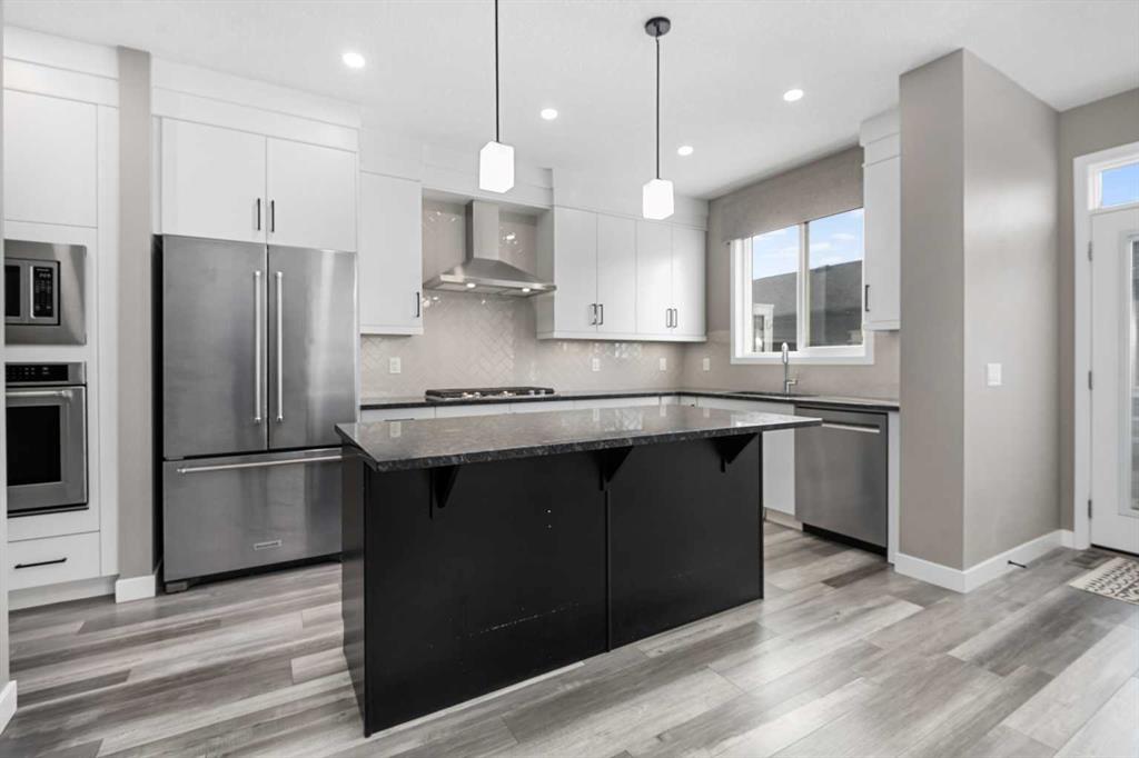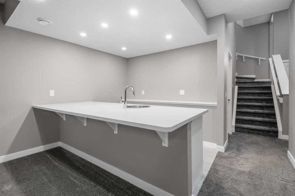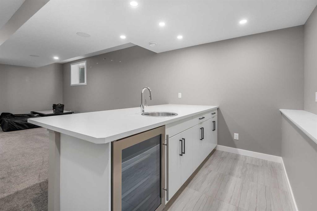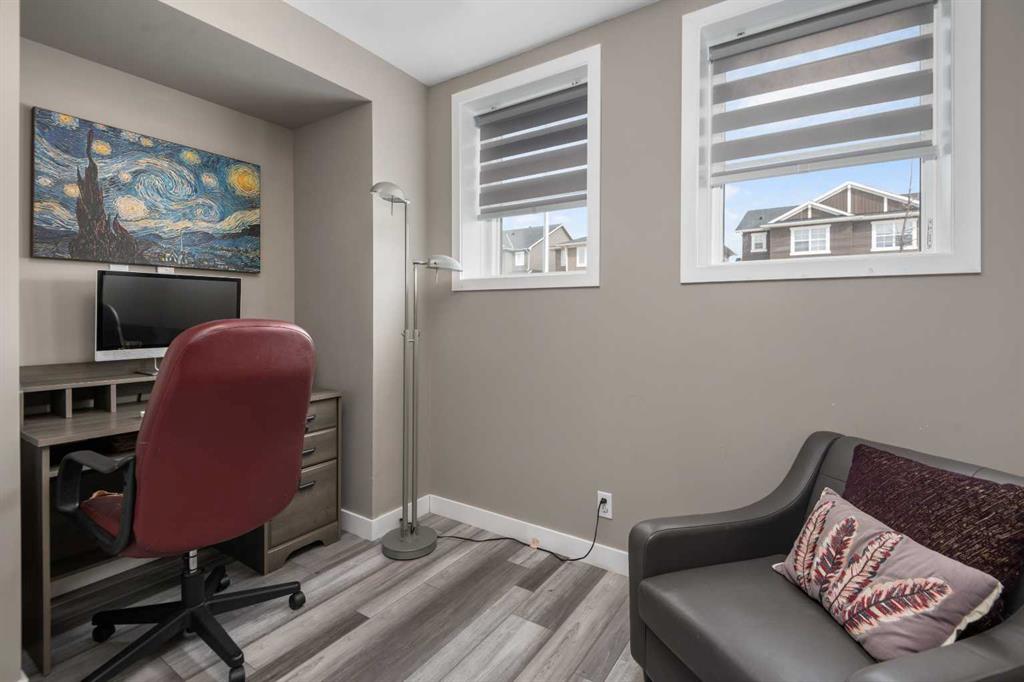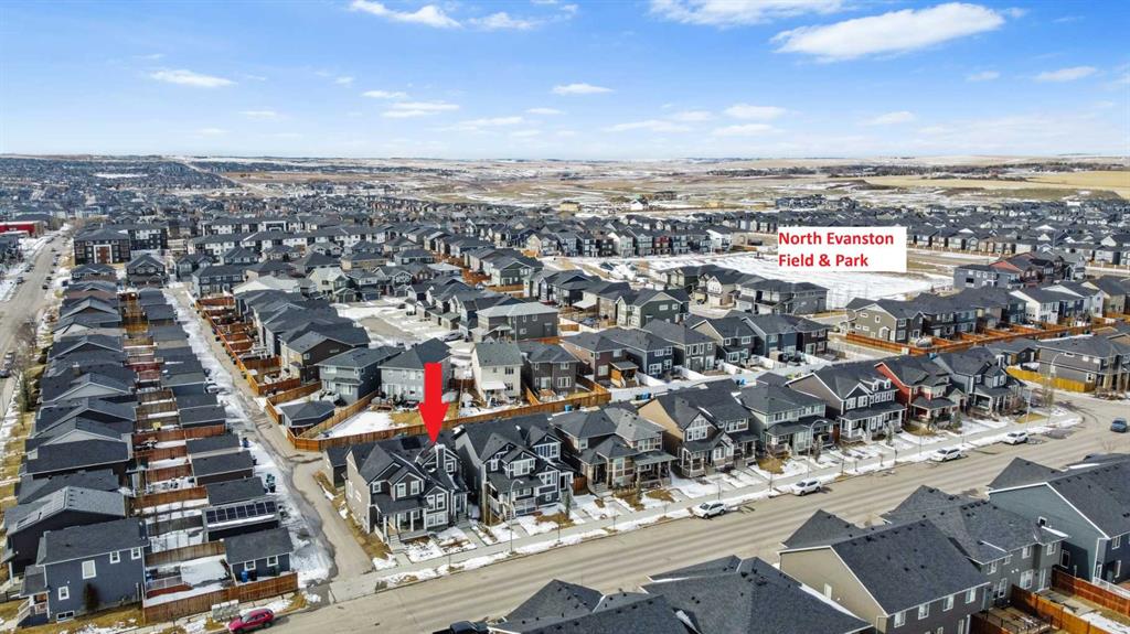 Welcome to this beautifully upgraded home in the desirable community of Evanston, offering the perfect blend of style, functionality, and low-maintenance living. Ideal for young professionals or those working from home, this property features two spacious bedrooms, a dedicated office, and a fully finished basement designed for both productivity and entertaining. The bright main level is filled with natural light thanks to large windows and a lofted ceiling, and includes a built-in HEOS sound system with ceiling speakers. The modern kitchen is designed for everyday living and entertaining, showcasing granite countertops, an impressive 8’ x 4’ island, ceiling height cabinetry, gas stove, and a stylish herringbone tile backsplash. Upstairs you’ll find the primary bedroom, convenient upper level laundry, and a dedicated office with large windows, creating a comfortable work from home space. Bathrooms feature quartz countertops and tiled flooring for a clean, modern finish. The fully finished basement with partially lofted ceiling provides spacious effect and adds excellent additional living space. Generous with extra large windows (can accommodate adding another bedroom or in-law suite), ceiling speakers, and an impressive 9 ft bar with sink, bar fridge, and cabinetry. It’s perfect for hosting or relaxing. Energy efficient upgrades include 12 new solar panels (Oct 2025) with a new ECU and rodent guard, along with a new EV charger in the insulated and drywalled garage. A beautiful curb appeal front yard with an established low maintenance showy garden including ornamental bushes and Swedish Aspen Columnar trees. The backyard equipped with a deck, greenhouse, berry bushes, resin shed, wood shed, and rain barrels to enjoy. Located close to parks, pathways, schools, and everyday amenities, this home offers modern comfort and an easy lifestyle in one of NW Calgary’s most popular communities.