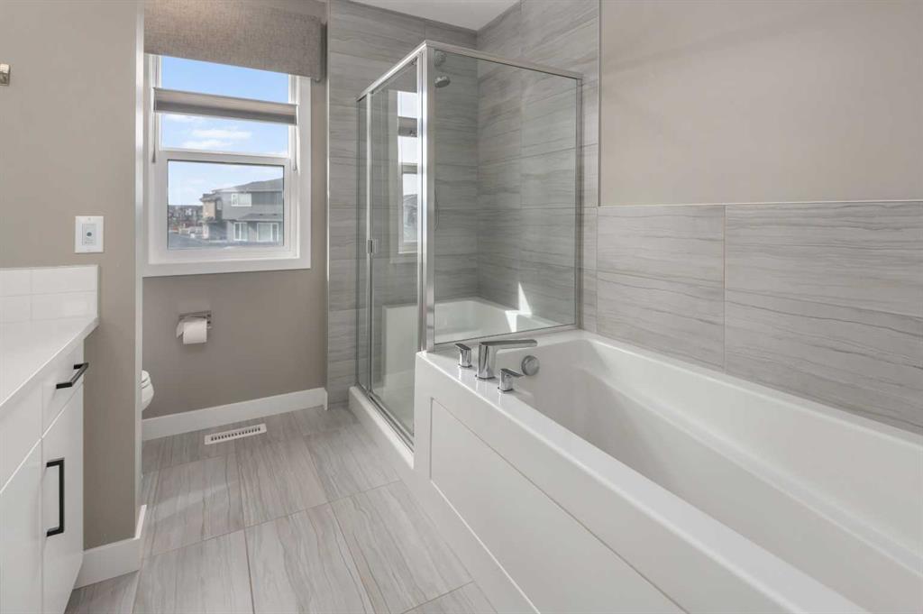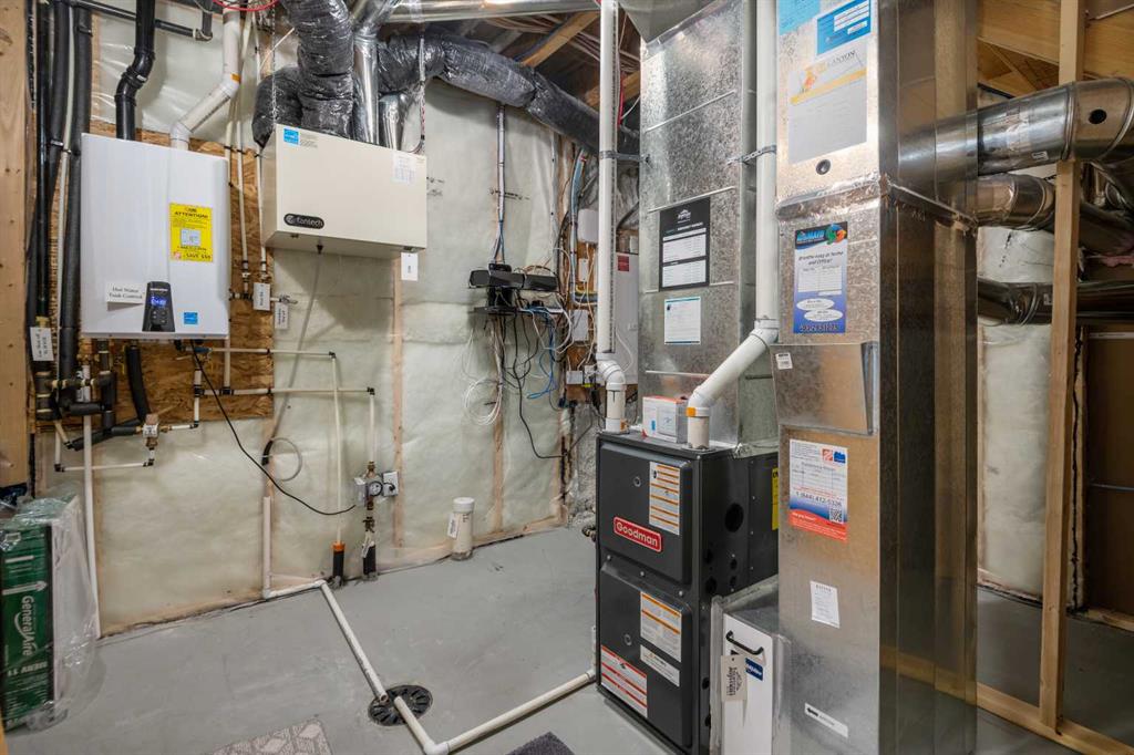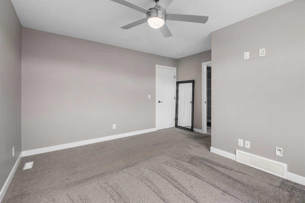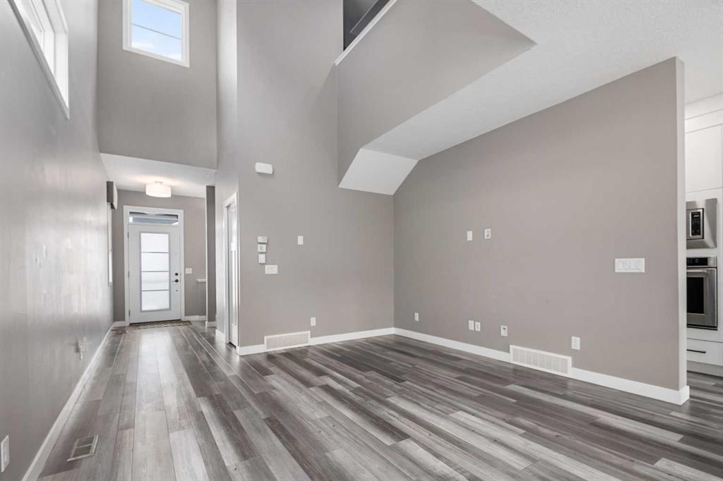 Welcome to this beautifully upgraded home in the desirable community of Evanston, offering the perfect blend of style, functionality, and low-maintenance living. Ideal for young professionals or those working from home, this property features two spacious bedrooms, a dedicated office, and a fully finished basement designed for both productivity and entertaining. The bright main level is filled with natural light thanks to large windows and a lofted ceiling, and includes a built-in HEOS sound system with ceiling speakers. The modern kitchen is designed for everyday living and entertaining, showcasing granite countertops, an impressive 8’ x 4’ island, ceiling height cabinetry, gas stove, and a stylish herringbone tile backsplash. Upstairs you’ll find the primary bedroom, convenient upper level laundry, and a dedicated office with large windows, creating a comfortable work from home space. Bathrooms feature quartz countertops and tiled flooring for a clean, modern finish. The fully finished basement with partially lofted ceiling provides spacious effect and adds excellent additional living space. Generous with extra large windows (can accommodate adding another bedroom or in-law suite), ceiling speakers, and an impressive 9 ft bar with sink, bar fridge, and cabinetry. It’s perfect for hosting or relaxing. Energy efficient upgrades include 12 new solar panels (Oct 2025) with a new ECU and rodent guard, along with a new EV charger in the insulated and drywalled garage. A beautiful curb appeal front yard with an established low maintenance showy garden including ornamental bushes and Swedish Aspen Columnar trees. The backyard equipped with a deck, greenhouse, berry bushes, resin shed, wood shed, and rain barrels to enjoy. Located close to parks, pathways, schools, and everyday amenities, this home offers modern comfort and an easy lifestyle in one of NW Calgary’s most popular communities.