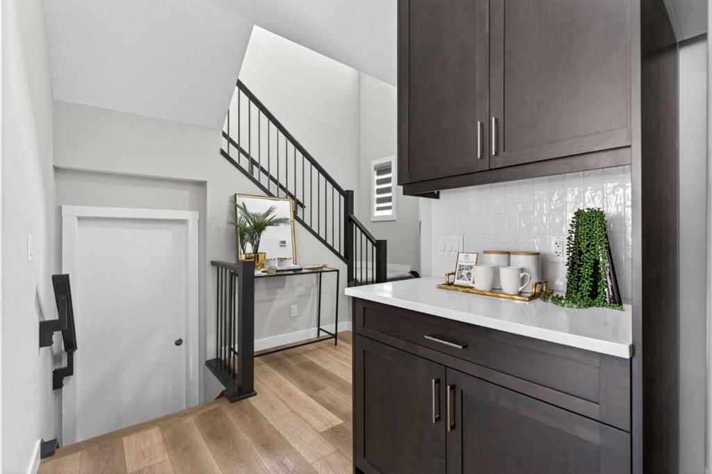 The chef-inspired kitchen is loaded with premium upgrades and designed for both style and functionality. It features ceiling-height cabinetry, added cabinets for extra storage, a built-in microwave, a stylish chimney hood fan, and a convenient walkthrough pantry that connects seamlessly for easy access and organization. Pot lights throughout the home and upgraded railings add a modern and luxurious touch to the overall design.