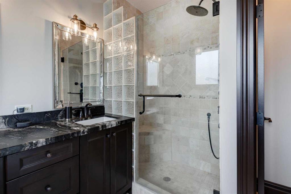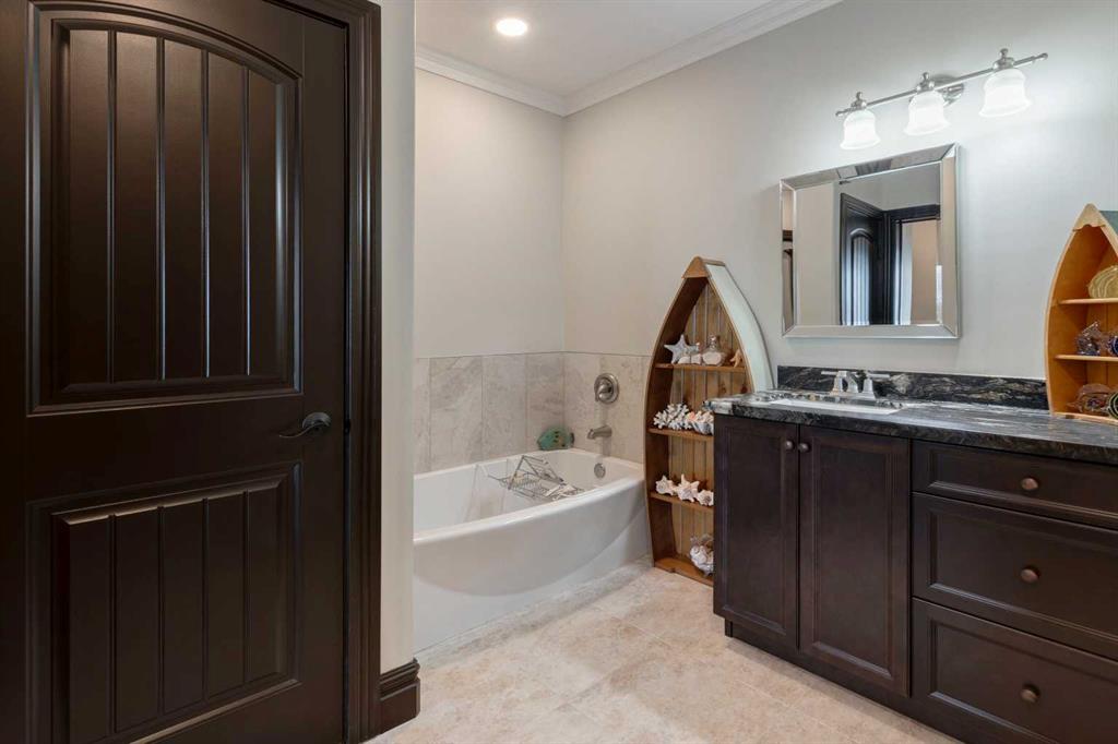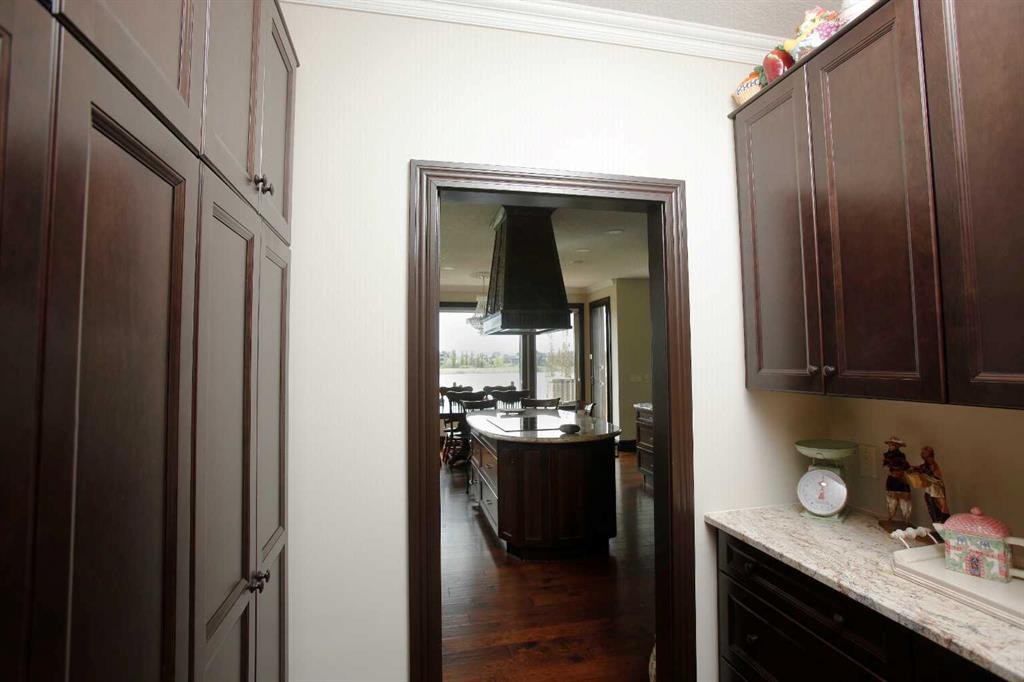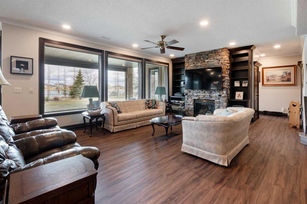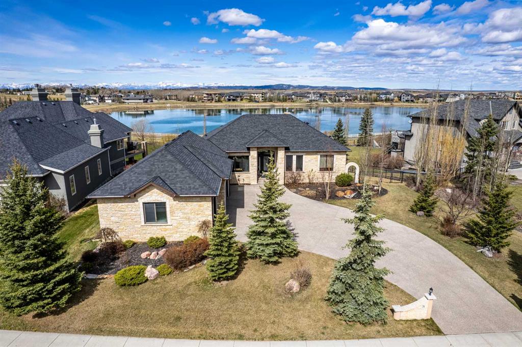 Luxurious Executive Custom-Built Bungalow Home with Walkout Basement backing onto the LAKE with SPECTACULAR ROCKY MOUNTAIN VIEWs. This home is in the charming community of Monterra on Cochrane Lakes. Country Living with City Convenience. This HOME nestled on .48 Acres offers over 3600SF of LIVING SPACE with HEATED 4 CAR GARAGE and a FENCED YARD. The features of this property are endless from the STONE ENTRANCE WING WALLS, exposed AGGREGATE DRIVEWAY to the EXTENSIVE RENOVATIONs. Step inside and be greeted by custom 10-foot ceilings, elegant hardwood flooring, and a wall of windows that provide expansive views and abundant natural light. Main level offers a PRIVATE OFFICE at the front of the home with custom built in bookcase, WALK-IN FRONT CLOSET with ample space, Luxurious OPEN SITTING/DINING AREA is off the living room, LIVINGROOM room offers a stone gas fireplace with custom made mantel, a wall of windows looking over the backyard toward the lake with the mountains beyond that. A “CHEF INSPIRED” Kitchen with cooper hood fan, double wall oven, sizable island, undermount lighting and custom granite backsplashes that duplicates the look of mountains extending into the BUTLERS PANTRY, The LAUNDRY ROOM/MUD ROOM leads into the 4 car GARAGE for all your vehicles and toys. The PRIMARY BEDROOM offers a wall of windows with STUNNING VIEWS of the Rocky Mountains with access to the large deck overlooking the backyard and lake. Retreat to the 5-piece ensuite spa with heated floors, double vanities with leathered granite countertops, jet tub, large shower with body jets, and walk-in closet. LOWER LEVEL offers in-floor heat throughout, a floor to ceiling stone gas fireplace, and a wall of windows once again to enjoy the outdoor views. There are 2 VERY SPACIOUS BEDROOMS, a 4PC BATH with leathered granite countertop, separate tub and stone tile shower with jets, CUSTOMIZED WET BAR with cabinet and undermount lighting, granite counter tops and bar fridge offers a great entertaining space, as does the great RECREATION ROOM for FAMILY FUN NIGHT and/or ENTERTAINING GUESTS. There is not a LUXURY or CRAFTMANSHIP that has been overlooked when this custom home was built or renovated, here are just a few: stunning unique interior stone walls, stone fireplaces, elegant crown moulding throughout, phantom doors to allow a nice breeze, LUX triple pane NEAT windows, surround sound throughout, and frameless decking system so as not to obstruct the magnificent views. The views are stunning from either level as are the gorgeous sunsets over the mountains. This is a MUST-SEE PROPERTY as very few properties in Monterra offer LAKE AND MOUNTAIN VIEWS AND A STUNNING HOME! Call today for your private viewing.