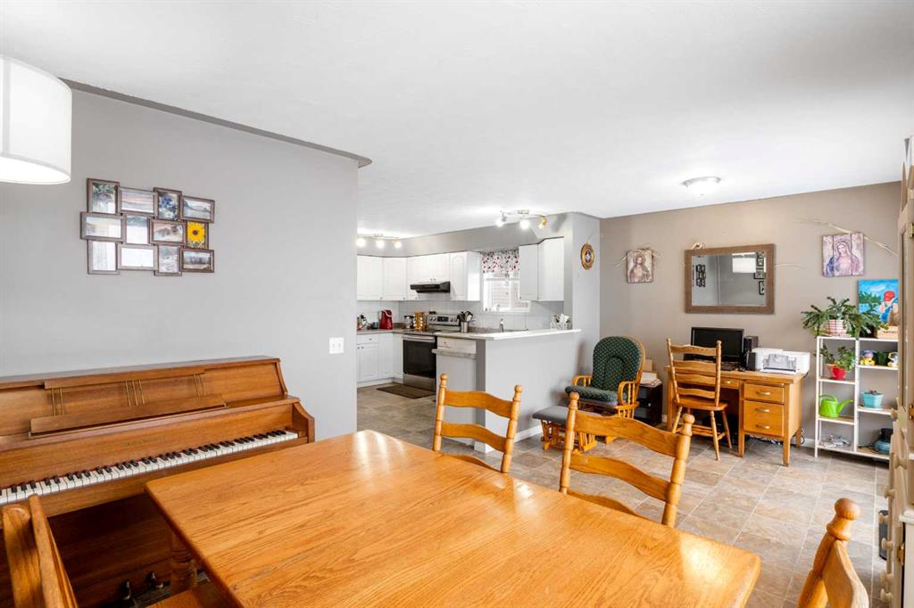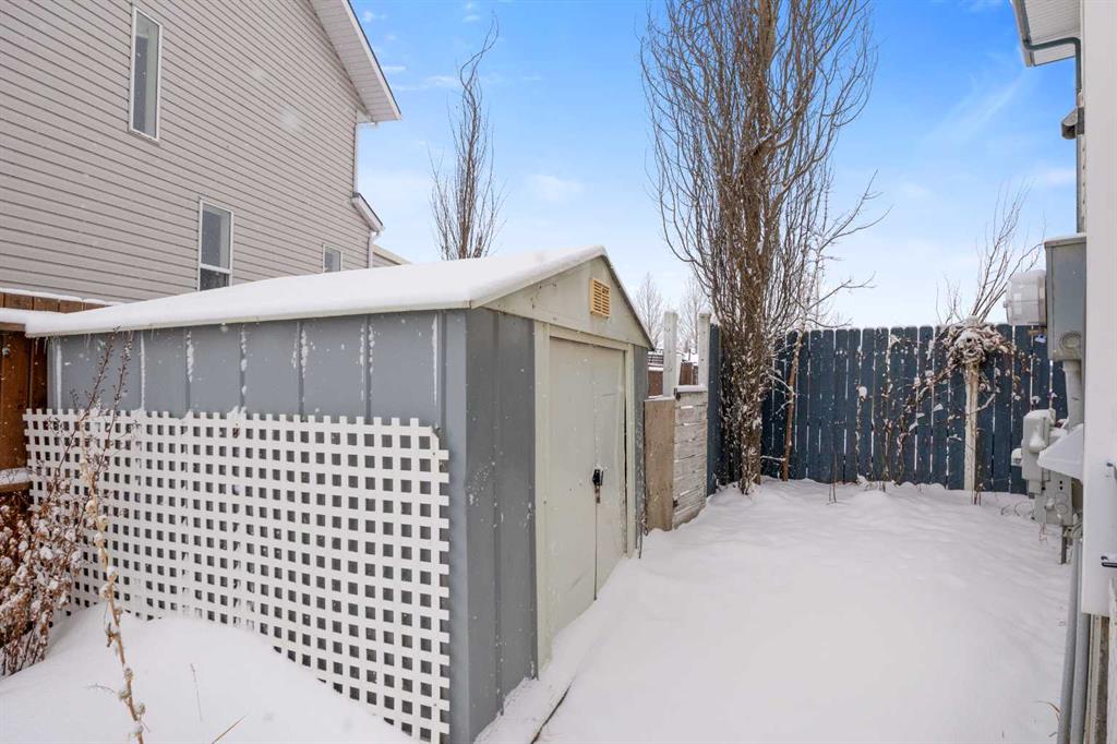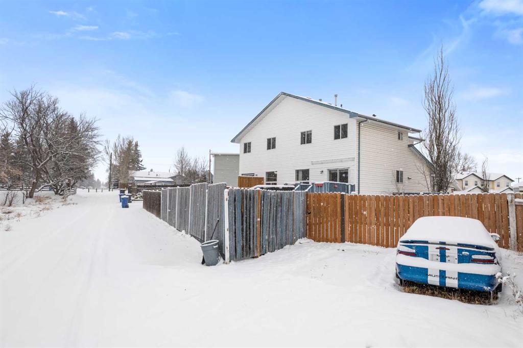 This well-maintained semi-detached home offers approximately 1,460 sq. ft. of total developed living space, a large pie-shaped backyard, and extra rear parking for two vehicles—an uncommon bonus in this neighbourhood. Located in a quiet cul-de-sac on the south end of town. Built in 1998, this home offers a functional layout across three levels and is ideal for first-time buyers, small families, or anyone looking to enjoy small-town living with easy access to local amenities. The home features three bedrooms on the upper level, including a generously sized primary bedroom, along with a 4-piece bathroom serving the upper floor. The main floor offers a bright and practical layout with a comfortable living and dining area, a functional kitchen, and a convenient 2-piece bathroom. Downstairs, the partially finished basement adds additional living space with a large recreation room that works well as a family room, playroom, or home office, along with another full bathroom. The lower level also includes utility space and additional storage, adding valuable flexibility for day-to-day living.