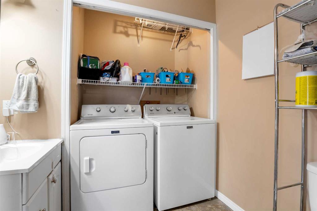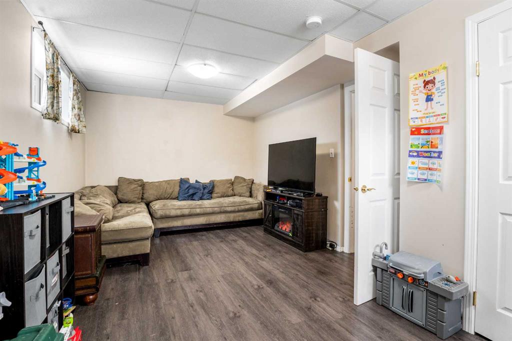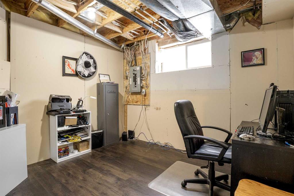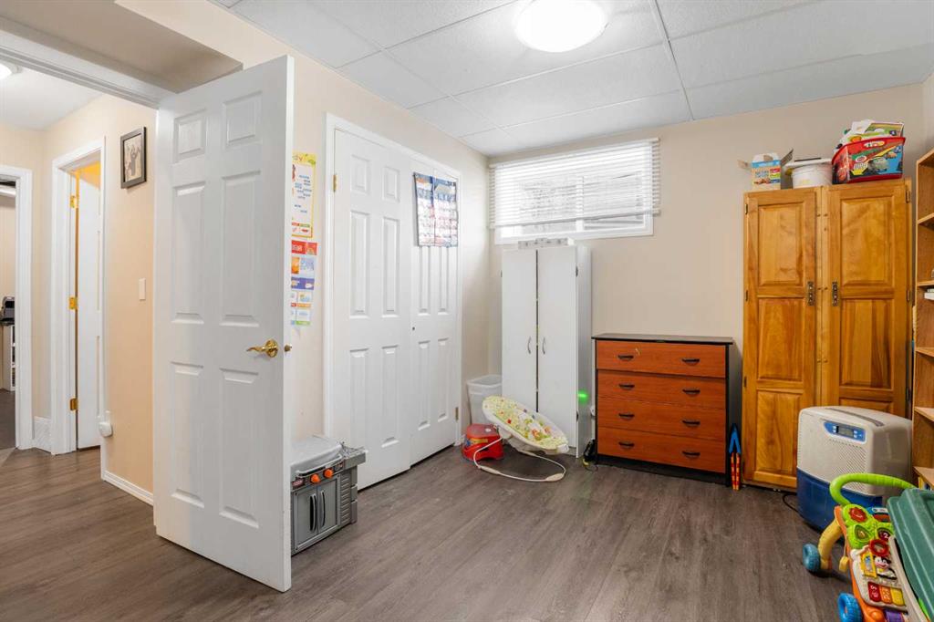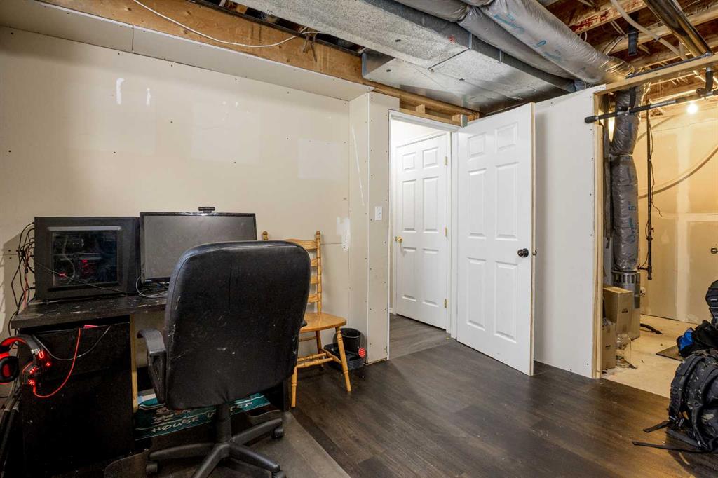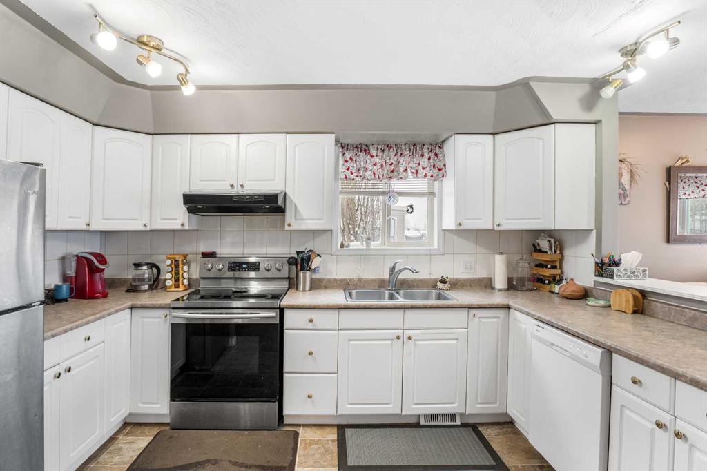 Outside, the pie-shaped lot creates a spacious backyard that offers more room than many properties in the area—perfect for kids, pets, gardening, or simply enjoying outdoor space. Parking is another standout feature. In addition to the single detached garage, the property includes two additional rear parking spaces, something that is rarely found on this style of home in Crossfield and especially valuable in a cul-de-sac location where street parking can be limited. The location adds to the appeal. Situated on the south side of Crossfield, the property is close to shopping and everyday services. Murdoch Park, with its playground and community pathways, is nearby, while the Crossfield Fish Pond, community dog park, and Collicutt Siding Golf Club are all just a short drive away.