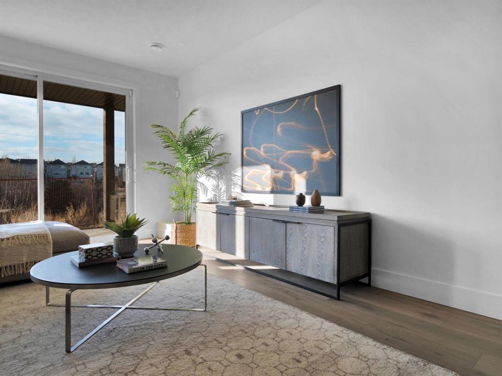 The Villas at Birch Point gives you the opportunity to live in an exclusive project in one of NW Calgary’s most beloved communities—Royal Oak. Overlooking the Royal Oak Natural Ravine Park, this 3-Bedroom, 2.5-bath, 2,240 sq. ft. (1,217 sq.ft. main floor RMS) Villa with a double attached garage and a fully developed walk-out basement is sure to fit your lifestyle perfectly. The main floor open-concept layout features 10’ high main floor ceilings, a chef-inspired kitchen with an upgraded appliance package, quartz countertops throughout and custom full-height cabinetry opening onto the dining room. The spacious living room is completed with a gas fireplace and access to an expansive 15’ x 10’ balcony overlooking the scenic, natural surroundings. A spacious primary bedroom appointed with a 4-piece ensuite including a luxurious curbless, full tiled walk-in shower, walk-in closet and in-suite laundry for added convenience completes the main floor. Downstairs, you’ll find two generously sized bedrooms, a full bathroom and additional living space with a wet bar (including bar fridge) that is perfect for entertaining. Walk-out access to a lower-level concrete patio with professionally designed landscaping and fully-fenced yard included. The Villas at Birch Point have been crafted for better living with no detail overlooked. The high-quality, low-maintenance materials ensure long-term, worry-free living. Condo fees include building insurance, exterior building maintenance and long-term reserve/replacement fund, landscape maintenance, snow removal service, and garbage/recycling/organics service so you can enjoy the Royal Oak lifestyle. With Country Hills Blvd and Stoney Trail just moments away and local shopping and amenities steps from your doorstep, you’re never too far from your favourite places in the NW. RMS measurements taken from plan as home is under construction. Photos from similar unit.