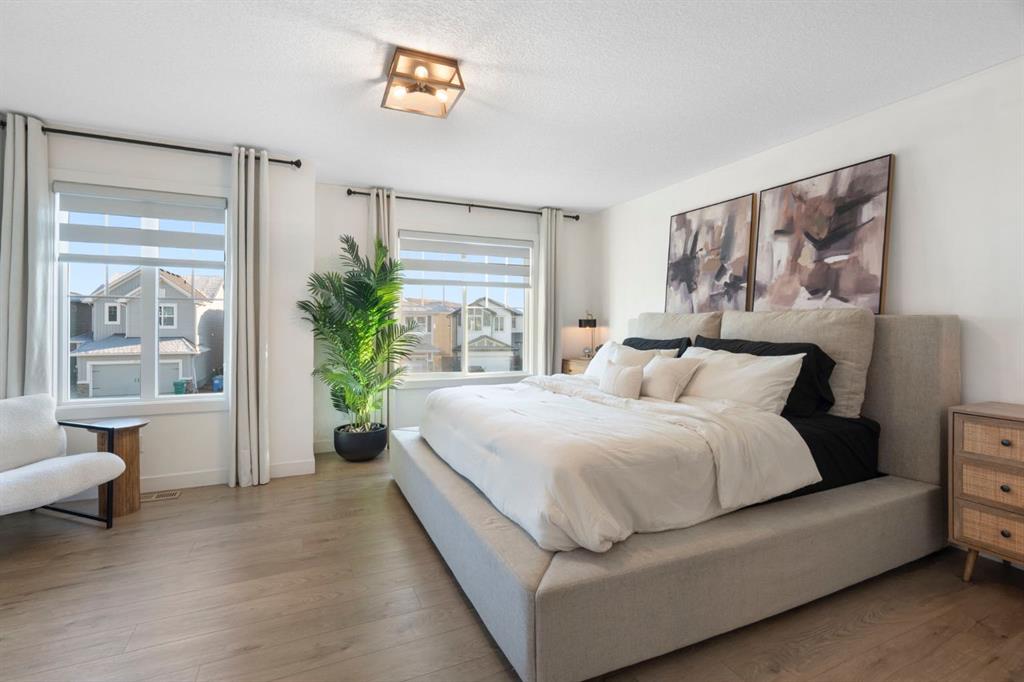 Upstairs, the central bonus room smartly separates the secondary bedrooms from the primary suite. The primary is enormous, offering a sitting area and a walk-in closet you won’t have to compromise with. The ensuite feels like its own retreat with a standalone tub, glass shower, double sinks, and plenty of storage. Vinyl plank runs throughout the upper floor for a cohesive look and easy upkeep.
