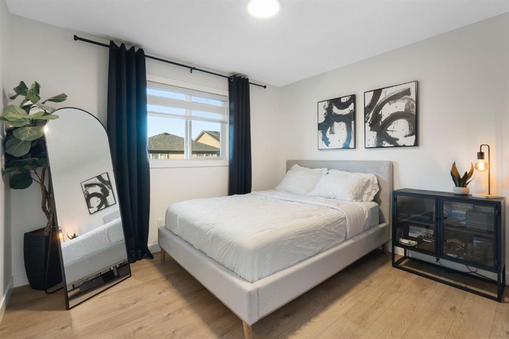 There’s a side entrance leading into the unfinished basement, complete with two large windows, ready for future development. The double garage is equipped with a plug for an electric vehicle. There are permanent LED lights on the exterior, the yard is fully fenced, and from here it’s an easy walk to the new dog park, playground, and Heartland’s growing pathway network. It’s a home that fits the way families live today, in a community that keeps getting better.