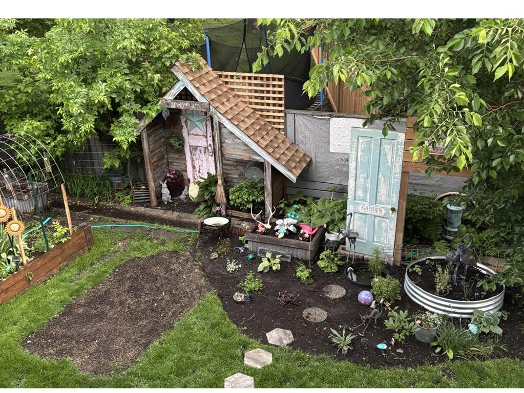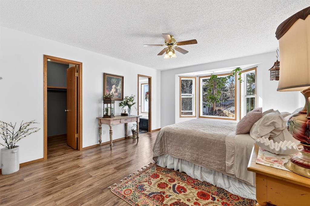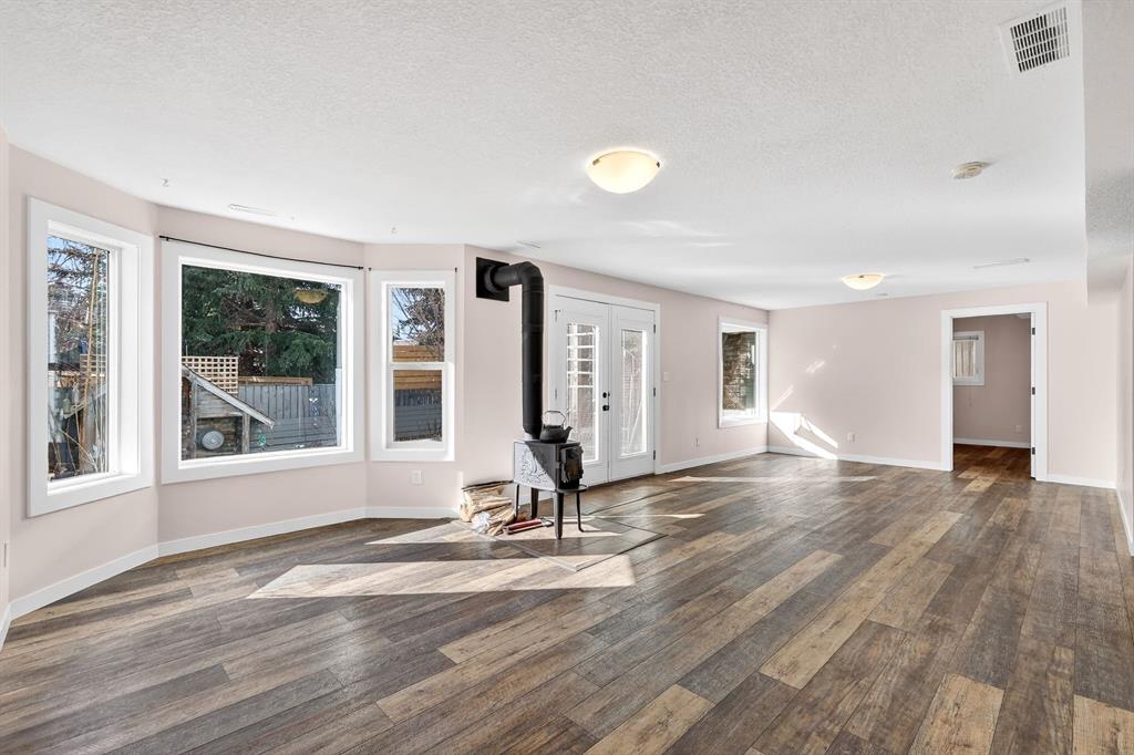 The walkout basement benefits from the raised bi-level design, allowing for large windows and plenty of natural light. This level includes two bedrooms, a den, and a spacious family room with a cozy wood-burning stove, creating an ideal second living area for family, guests, or teenagers. Outside, the large backyard features an environmentally friendly garden with rain barrels and raised beds, along with several peaceful outdoor nooks to enjoy the space. With a large double garage, mountain views, a beautiful yard, and a quiet location, this home presents a fantastic opportunity in one of Okotoks’ most established and desirable neighbourhoods.