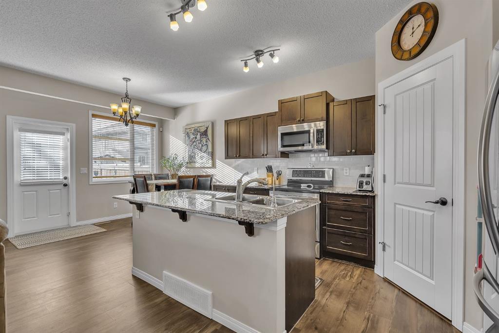 Welcome Home to this beautifully maintained property in the heart of family-friendly Walden, where space, comfort, and thoughtful upgrades come together in all the right ways. With OVER 2,600 SQ FT OF FULLY DEVELOPED LIVING SPACE, this home offers room for everyone. Upstairs, you’ll find THREE GENEROUS BEDROOMS, including a calming primary retreat with a FIVE-PIECE ENSUITE featuring HIS & HERS SINKS, GRANITE COUNTERTOPS, AND A SPACIOUS TILED SHOWER. The upper four-piece bathroom features an elongated GRANITE countertop for all your beauty items. At the front of the home, the BRIGHT BONUS ROOM is filled with natural light thanks to large windows—perfect as a family hangout, homework zone, or cozy movie space. The main floor is designed for real life with LAMINATE FLOORING throughout and an open living room anchored by the COZY GAS FIREPLACE. The large, functional kitchen with GRANITE COUNTERTOPS, stainless steel appliances, AND A WALK-THROUGH PANTRY makes everyday living (and entertaining) effortless. Downstairs, the FULLY DEVELOPED BASEMENT continues the home’s thoughtful design with a spacious recreation area, a FOURTH BEDROOM, and a FULL BATHROOM finished to the same standard as the rest of the home. This home is LOADED with UPGRADES that quietly elevate daily living: a double attached garage complete WITH HEATER, CENTRAL AIR CONDITIONING, dog wash, security system, WATER SOFTENER AND PURIFIER, SHEDS, and even a BBQ ready for summer evenings. All of this sits on a FULL-SIZED LOT, just a SHORT WALK TO WALDEN’S SHOPS, SERVICES, AND AMENITIES.