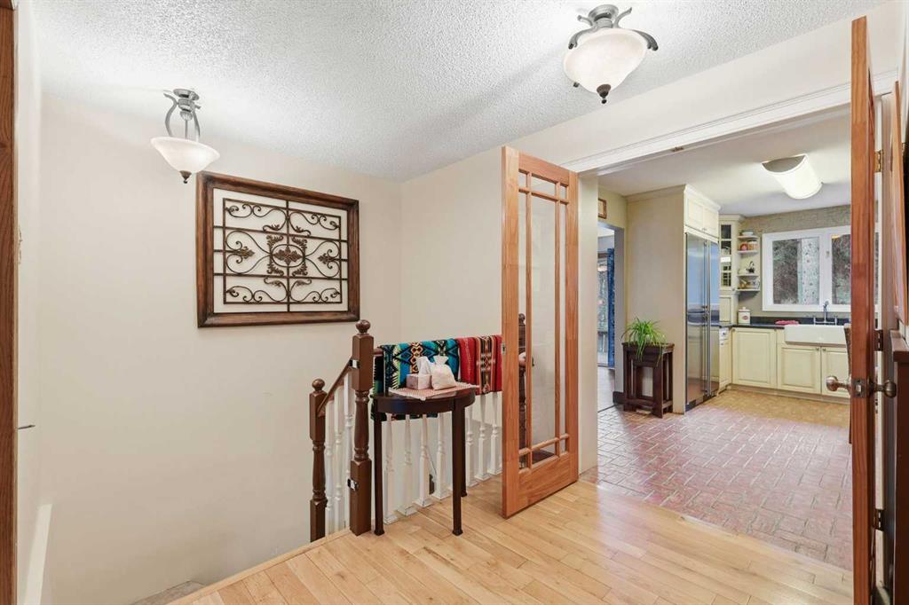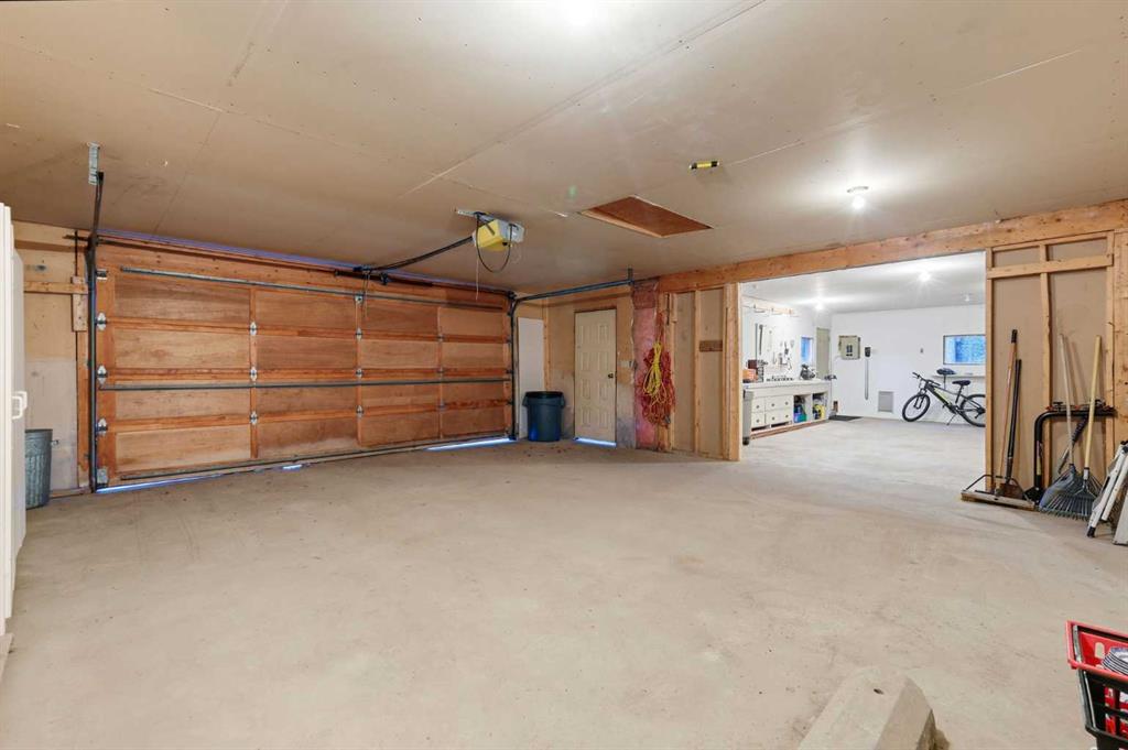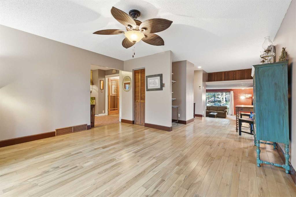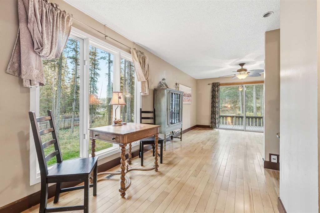 A rare Bragg Creek offering — 1,967 sq. ft. above grade (over 3,700 sq. ft. total developed) on a quiet, family-friendly crescent. This warm and functional 4 bed / 3 bath home sits on a mature, treed 0.59-acre lot with valuable back-lane access. Walkable to the Elbow River, schools, community centre, playgrounds, cafés, groceries, pubs, and restaurants. Close to Bragg Creek Provincial Park and a short drive to all your favourite trailheads, including West Bragg Creek, Moose Mountain, McLean Creek, and Elbow Falls. The home blends classic Bragg Creek character with modern comfort. Large windows and natural light carry through the main living and dining areas, creating an easy, welcoming flow for everyday family life and entertaining. The updated modern farmhouse-style kitchen is both functional and striking, with high-end finishes including granite countertops, stainless steel appliances highlighted by a WOLF gas range, and built-in workspace and storage. The kitchen overlooks the private, treed backyard — perfect for BBQs, kids, and quiet mornings. The main floor is designed for real living. It features a large, bright, and cozy living area with oversized windows and a wood-burning fireplace, plus a sun-filled dining area with sliding door access to the backyard and hot tub — the perfect place to gather after a day on the trails or unwind in any season. Also on the main level: a comfortable primary bedroom with 4-piece ensuite, and a dedicated guest bedroom with its own ensuite — ideal for multi-generational living or hosting with privacy. The split-level lower level adds even more flexibility with a large rec / office area, two additional bedrooms, a full bathroom, and storage. The layout also creates excellent potential for future development, studio space, home business, or hobby use. Outside, the property really delivers. The 0.59-acre lot offers room to garden, play, park the toys, and spread out. There’s serious garage and workshop capacity: a 22′ x 24′ garage plus an attached 17′ x 24′ workshop for projects, tools, bikes, and gear. The back lane adds long-term upside, including the possibility of a future carriage house, studio, or expanded shop (subject to Rocky View County approvals). Living here means sharing space with nature — it’s not unusual to see deer wandering through the trees or hear owls at night — while still being moments from everyday amenities. This is a rare chance to own in the heart of Bragg Creek — a private, treed lot with garage + workshop and future potential. Opportunities like this don’t come up often.