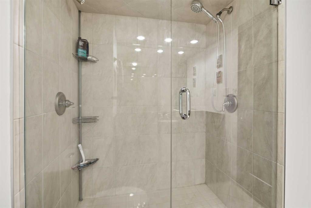 The primary suite is impressive in both scale and comfort, offering over 300 sq ft of private retreat space, a walk-in closet, and a sleek ensuite with walk-in shower. The second bedroom and full bath provide flexibility for guests, a dedicated office, or both — without feeling tight or compromised.