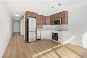 ***Welcome to “LIDO” By BATTISTELLA*** Experience urban living at its finest in this beautiful designed one -bedroom condo, ideally located within walking distance to Kensington’s boutique shops, trendy restaurants, coffee spots, and grocery stores. This thoughtfully laid-out unit features a spacious bedroom with an interior window and sliding frosted glass doors, offering both light and privacy. The kitchen showcases modern cabinetry, sleek quartz countertops and high-end Electrolux stainless steel appliances, complemented by imported European vinyl plank flooring and 9-ft ceiling flood the space with natural light, while central A/C(building unit)ensures year-round comfort. Enjoy added convenience with an in-suite laundry room, a deep entry-way closet with built-in shelving, and an assigned secure storage locker with bike storage. Step out onto your private balcony-perfect for relaxing or entertaining-with a BBQ gas line already in place. Plus, take full advantage of the incredible rooftop deck with a centre gas fireplace ,offering sweeping downtown views. An exceptional opportunity for first time buyers, professionals or investors looking to enjoy the vibrancy of inner city living!