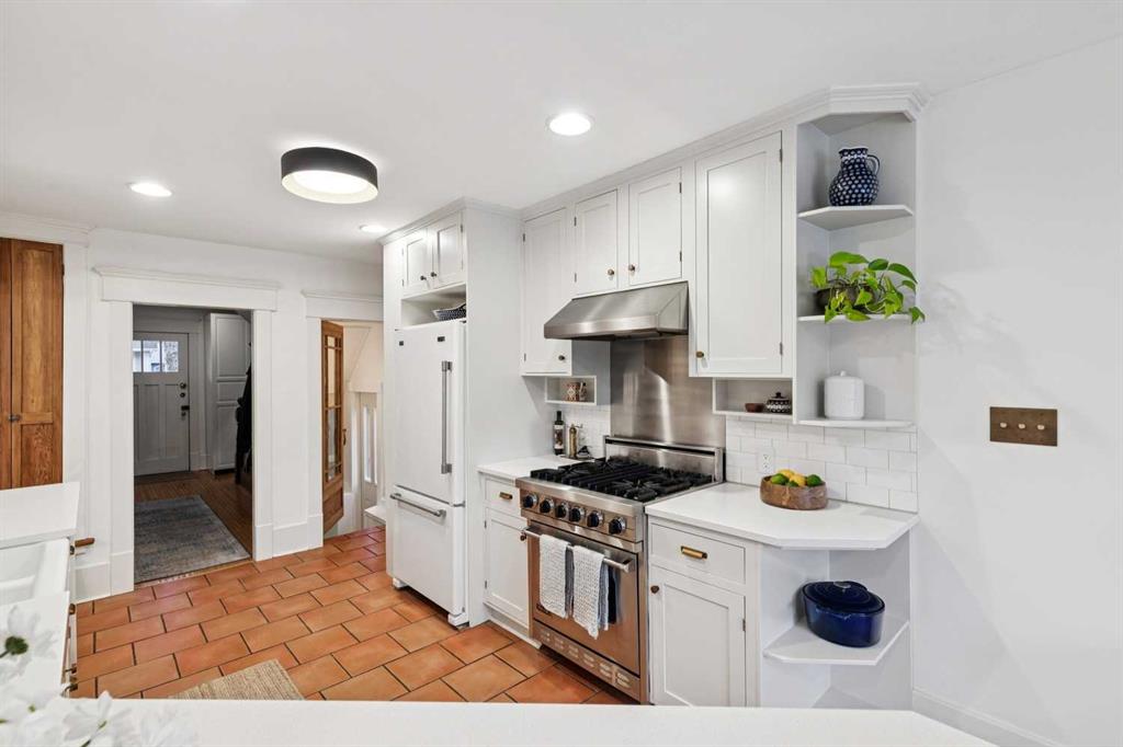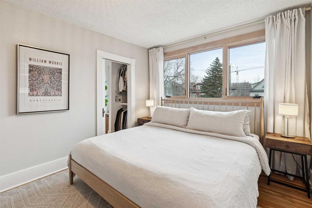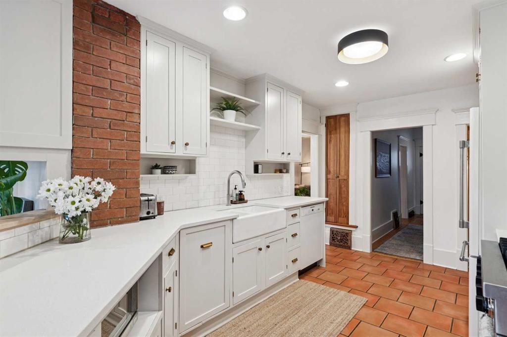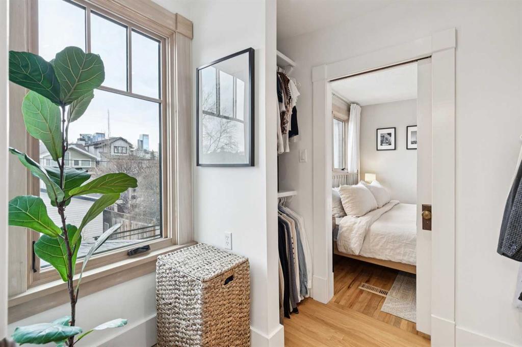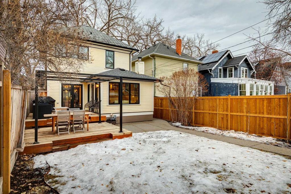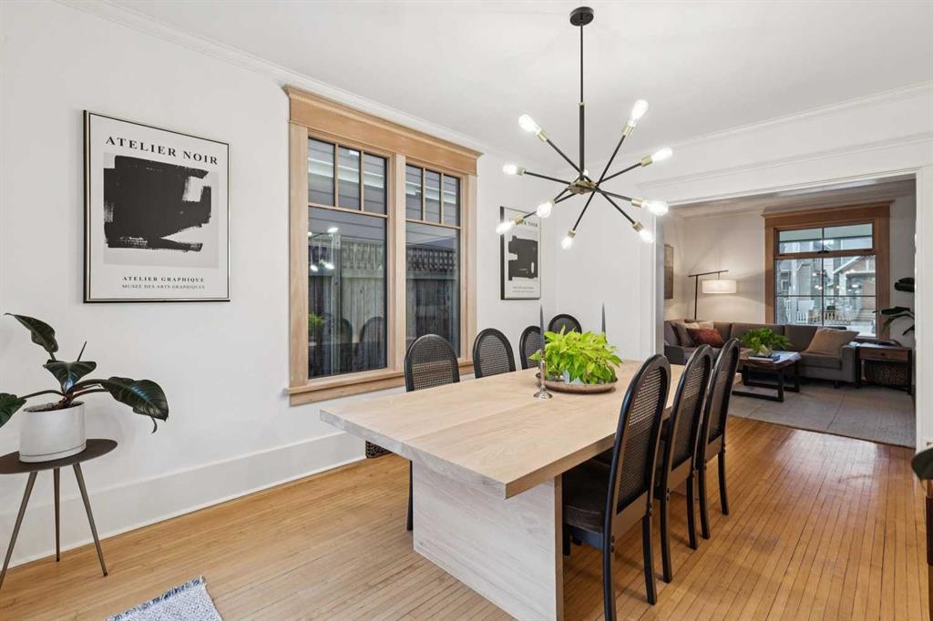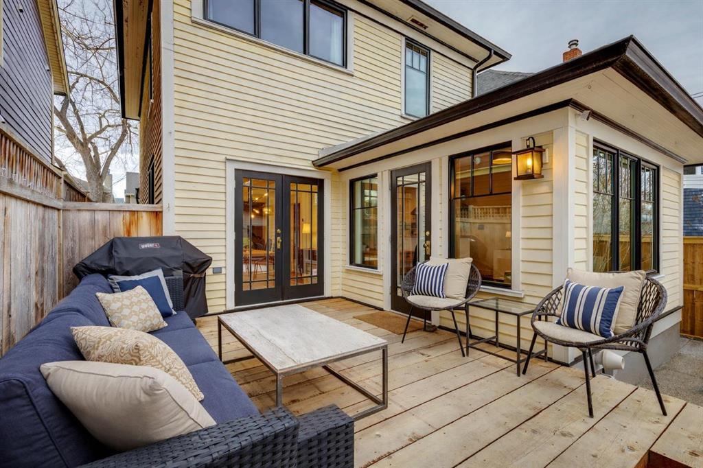 Open House Sat Feb. 14th 1-3pm! Located on the highly desirable 300 block of 11A Street NW in the heart of Hillhurst “proper,” this exceptional property offers an unbeatable inner-city lifestyle as it is just steps from Calgary’s iconic Kensington shopping district, the Sunnyside LRT Station, Riley Park, & the Bow River Pathway System, is within easy walking distance to Hillhurst & Queen Elizabeth Schools, & Downtown is a quick 20-minute walk, it doesn’t get more convenient. Situated on a generous 30 x 125 ft lot, this beautifully restored 1912 character home offers >2000 sq. ft. of living space, seamlessly blending heritage charm with extensive modern upgrades. Original details have been thoughtfully retained, including maple & oak hardwood floors, original balusters, & heritage millwork, now complemented by new custom Lux wood windows throughout, improving energy efficiency while remaining true to the home’s historic character. The main floor features a welcoming living room & a spacious dining area with double French doors opening to a large, multi-tiered deck, perfect for entertaining. The modern galley kitchen is well-appointed with a Viking gas range with griddle, Miele dishwasher, newer refrigerator with ice maker, white quartz countertops, a double farmhouse sink, & ample prep space. Just off the kitchen, a cozy nook with a wood-burning stove & built-in desk provides an ideal work-from-home or reading retreat. Upstairs, you’ll find three bedrooms, including a serene primary retreat offering downtown views, a walk-in closet, & a private ensuite with new vanity. The fully developed basement delivers a contemporary feel with a large entertainment room, full 3-piece bathroom, dedicated office, & laundry room. New carpet lends warmth to the space. This home has undergone substantial mechanical & infrastructure upgrades, including: new 200-amp electrical panel, updated plumbing with all Poly-B removed & replaced with PEX, replacement of original lathe & plaster, & updated main sewer line. Comprehensive insulation upgrades include fiber-glass insulation in all above-grade exterior walls, soy-based spray foam in the basement, & R-50 attic insulation Comfort & efficiency are enhanced by a 92% high-efficiency furnace with Nest thermostat & a Navien on-demand hot water system. Additional upgrades include meticulously refinished interior doors & fresh paint throughout. Outside, enjoy the rebuilt two-tiered deck constructed from salvaged heavy cedar timbers, along with new front & rear landscaping, thoughtful uplighting, new aggregate concrete patio & walkways, & new fencing. Completing the property is a new oversized double garage (insulated, drywalled & heated) with a fully equipped custom workshop, featuring a foldaway work table, large built-in work surfaces with French cleat storage system, & wall-mounted bike storage. A rare opportunity to own a thoughtfully upgraded character home in one of Calgary’s most coveted inner-city communities. Call for more information!