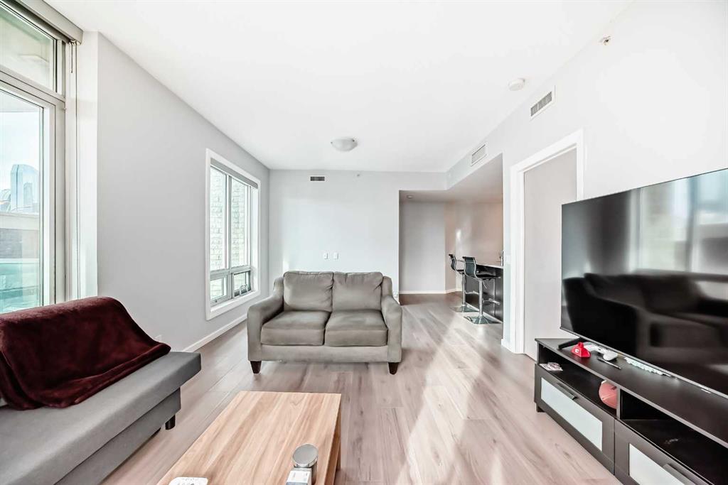 Welcome to SASSO, a sleek addition to Calgary’s vibrant Beltline. Surrounded by some of the city’s best dining, shopping, and entertainment, this unbeatable location is just steps from 17th Avenue, Stampede Park, the BMO Centre, and the downtown core. With the Victoria Park LRT Station right across the street, getting anywhere in the city is effortless, making both work and play completely within reach. This bright two bedroom, two bathroom condo features a thoughtfully designed single level layout with a modern, neutral palette, ideal for first time buyers, young professionals, or investors. The contemporary kitchen is equipped with granite countertops, stainless steel appliances, and a generous sized eating bar, perfect for both everyday living and entertaining. oversized windows flood the open concept living and dining area with natural light, opening onto a spacious wraparound terrace, offering stunning views of the downtown cityscape. The primary bedroom is complete with a walk-in closet and four-piece ensuite, while the second bedroom provides flexible space for guests or a home office. Residents of this 18+ building enjoy an exceptional collection of premium amenities, including full concierge service, a fully equipped fitness centre, sauna, steam room, hot tub, private movie theatre, games and recreation room, as well as secure underground parking. This unit also includes a heated underground parking stall and a dedicated storage locker. This is an outstanding opportunity to experience urban living at its finest, where location, lifestyle, and value come together in a truly remarkable residence. Schedule your private showing today and experience everything SASSO has to offer.