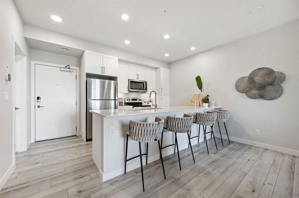 ** OPEN HOUSE SATURDAY 2-4** **BRAND NEW HOME ALERT** Great news for eligible First-Time Home Buyers – NO GST payable on this home! The Government of Canada is offering GST relief to help you get into your first home. Save $$$$$ in tax savings on your new home purchase. Eligibility restrictions apply. For more details, visit a Jayman show home or discuss with your friendly REALTOR®. LOVE YOUR LIFESTYLE! Les Jardins by Jayman BUILT next to Quarry Park. Inspired by the grand gardens of France, you will appreciate the lush central garden of Les Jardins. Escape here to connect with Nature while you savor the colorful blooms and vegetation in this gorgeous space. Ideally situated within steps of Quarry Park, you will be more than impressed. Welcome home to 70,000 square feet of community gardens, a stunning Fitness Centre, a Dedicated dog park for your fur baby, and an outstanding OPEN FLOOR PLAN with unbelievable CORE PERFORMANCE. You are invited into a thoughtfully planned 2 Bedroom, 2 Full Bath plus expansive balcony beautiful Condo boasting QUARTZ COUNTERS throughout, sleek STAINLESS STEEL WHIRLPOOL APPLIANCES featuring a Whirlpool refrigerator with top mount freezer, dishwasher with stainless steel interior, electric freestanding range with self clean, microwave hood fan. Luxury Vinyl Plank Flooring, High End Fixtures, Smart Home Technology, A/C and your very own in suite WASHER AND DRYER. This beautiful suite offers bright bedrooms with large windows, a storage area with a hanging rack, a large Primary Suite with a walk-in closet and en suite, a spacious dining/living area with sliding doors, an open concept layout between the kitchen, dining, and living room, and ample kitchen and bathroom counter space. STANDARD INCLUSIONS: Solar panels to power common spaces, smart home technology, air conditioning, state-of-the-art fitness center, high-end interior finishings, ample visitor parking, luxurious hallway design, forced air heating and cooling, and window coverings in bedrooms. Offering a lifestyle of easy maintenance where the exterior beauty matches the interior beauty with seamless transition. Les Jardins features central gardens, a walkable lifestyle, maintenance-free living, nature nearby, quick and convenient access, smart and sustainable, fitness at your fingertips, and quick access to Deerfoot Trail and Glenmore Trail. It is located 20 minutes from downtown, minutes from the Bow River and pathway system, and within walking distance to shopping, dining, and amenities. Schedule your appointment today!