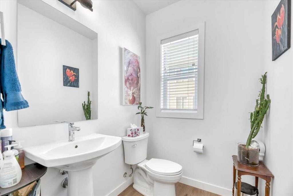 Upstairs, the heart of the home shines with a sun-filled open-concept living, dining, and kitchen area, ideal for both everyday living and entertaining. The kitchen offers style and function in equal measure, while the spacious living room flows seamlessly to a large private balcony—perfect for morning coffee or unwinding at the end of the day. A convenient 2-piece powder room completes this level.