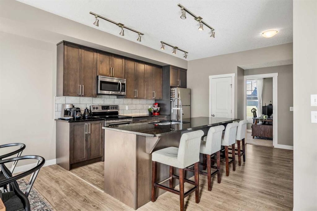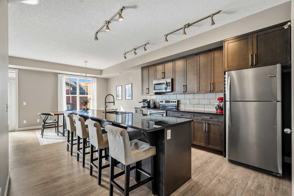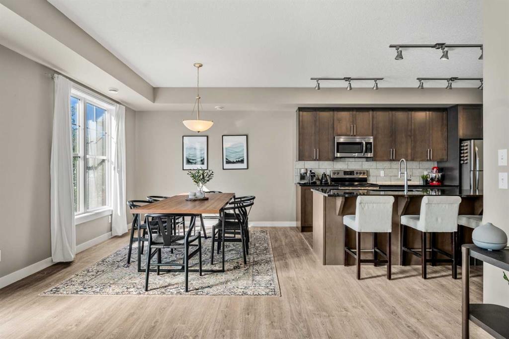 Welcome to 310 Cranford Walk SE in the exceptional community of Cranston! This beautifully maintained bungalow style townhome exemplifies class, sophistication, and pride of ownership throughout. Step inside to a spacious entryway that offers a large coat closet and flows up into the main living area, where you’re welcomed by an expansive, sunlit space thanks to the 9 FOOT CEILINGS and the unit’s SOUTHWEST EXPOSURE that fills the home with natural light all year long. Don’t worry as you’ll STAY COOL in the warmer months with the NEW CENTRAL AIR CONDITIONER! The living room offers both comfort and functionality, centered around a cozy GAS FIREPLACE that creates a perfect focal point. Just off the living area is a formal dining room with ample space to accommodate a large dining table, making it ideal for entertaining and hosting family gatherings! The kitchen is a dream with rich CEILING HEIGHT MAPLE CABINETRY, elegant hardware, GRANITE COUNTERTOPS, a tile backsplash, an under-mount sink, STAINLESS STEEL APPLIANCES, a pantry and a LARGE ISLAND with an overhang for bar stools, providing a perfect setting for casual meals or morning coffee. This home features two spacious secondary bedrooms, each with large windows that bring in plenty of natural light. The primary bedroom serves as a true retreat, complete with a WALK-IN CLOSET and a beautifully finished ensuite with a large walk-in shower featuring dual seats and GLASS DOORS. A second full bathroom with a deep soaker tub and a dedicated MAIN FLOOR LAUNDRY ROOM with additional storage space complete this floor. Additional highlights include timeless and durable VINYL PLANK FLOORING and a massive 25′ by 7’11” deck with a GAS LINE for barbecuing where you can enjoy views of mature landscaping and nearby community pathways. The basement offers a large, versatile RECREATION SPACE perfect for a home office, gym, playroom, or extra storage and is conveniently located just off the ATTACHED DOUBLE-CAR GARAGE (NOT TANDEM). This townhome complex also offers plenty of VISITOR PARKING for your friends and family. This home is perfectly situated in Cranston with easy access to scenic Cranston Ridge and the Bow River Valley. Here you’ll find both paved and naturalized trails that connect to Calgary’s extensive pathway system, offering year-round outdoor enjoyment including walking, biking, and direct access to FISH CREEK PARK. Families will appreciate the proximity to excellent PUBLIC and CATHOLIC ELEMENTARY & MIDDLE SCHOOLS within walking distance, making this an ideal location for children of all ages. Cranston offers outstanding convenience, with the popular CRANSTON MARKET just minutes away, featuring Sobeys, coffee shops, restaurants, banks, and more. You’re also a short drive from the South Health Campus, Seton Urban District, and major roads like DEERFOOT and STONEY TRAIL, ensuring quick commutes in every direction. Book your showing today!