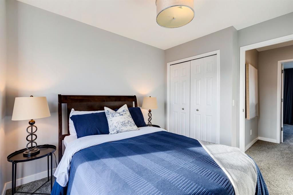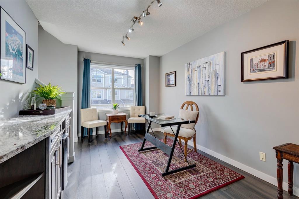 Luxury living in the desirable Quinterra complex on Calgary’s posh west side! Enjoy a beautifully designed and landscaped townhome complex with a water feature that greets you as you enter and mature trees throughout. The complex is pet-friendly with plenty of visitor parking and your own attached garage! One of the rare RENOVATED units in this complex, you can enjoy a spectacular kitchen with granite counters, custom cabinetry, stainless steel appliances, under-cabinet lighting and an adjacent laundry/pantry with amazing storage! The dining area is next to the private balcony, perfect for morning coffees and evening BBQs! Enjoy winter nights cozied up in the living room with gas fireplace and views of the trees outside (not a fishbowl of other units like many newer complexes!). Sunny SE-facing den on this level is an amazing home office or could be set up as a lovely music room, yoga space, library, play area, second living room or more. Upstairs, the primary suite is stunning with walk-in closet, additional wall-to-wall wardrobe and luxurious 5-piece ensuite bath with an abundance of storage. Sunny 2nd bedroom is generously sized. Being an end unit gives windows on multiple sides of this home and there is great light throughout! The entry level has a coat closet and direct garage access and the full-length driveway is perfect for a second vehicle. Quick access to all of the shops and restaurants of 85 Street West like Mercato, Blanco Cantina, Una Pizza, brunch spots, sushi, Deville Coffee and much more. Drive downtown in just 15 easy minutes. Drive west to the mountains or enjoy access to nature at nearby Paskapoo Slopes or Edworthy Park. Please note the condo fees INCLUDE HEAT, WATER & SEWER (rare for townhomes) and the heating is in-floor on all levels so it’s super cozy and efficient!
