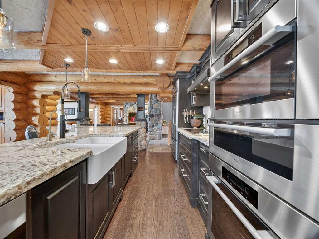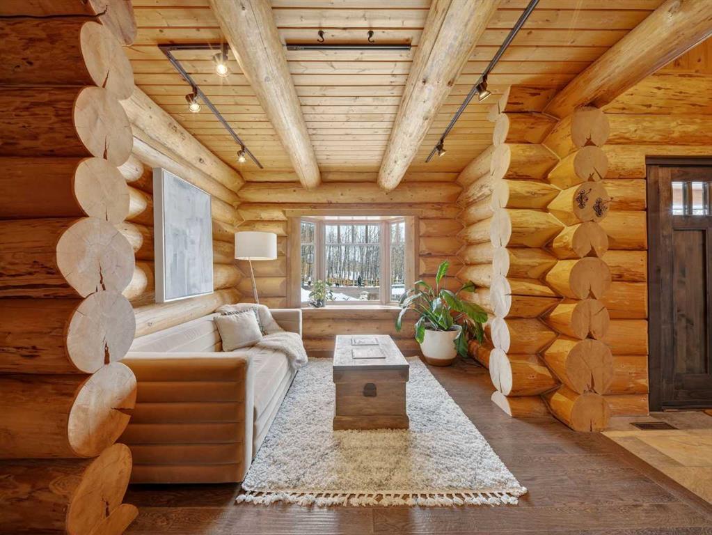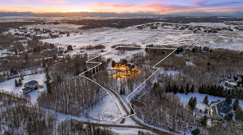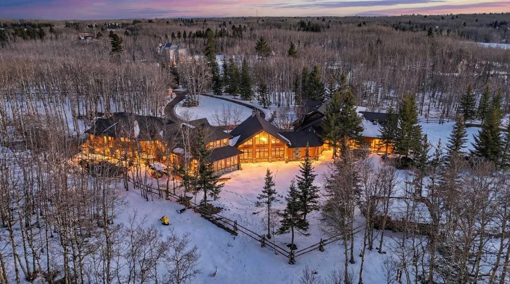 A rare 12.5 acre estate in the heart of Bearspaw. Previously offered on 4.29 acres, this property has been fundamentally transformed through the strategic assembly of an expansive western parcel, now encompassing approximately 12.5 acres of private land in one of Rocky View County’s most prestigious enclaves. For the established family or equestrian buyer seeking meaningful scale, long-term value, and exceptional privacy, this is an entirely elevated opportunity. The 6,000+ sq ft log and stone residence remains a striking blend of mountain architecture and refined modern design. Vaulted ceilings, exposed beams, and expansive windows frame panoramic views, while multiple gathering spaces create seamless flow for both everyday living and large-scale entertaining. The chef’s kitchen, complete with natural-edged island, granite surfaces, farmhouse sink, and premium appliances, anchors the main level. A dramatic great room with heated stamped concrete floors and a commanding stone fireplace offers a sophisticated yet welcoming focal point. Formal and informal dining areas, a private office, and thoughtfully designed secondary spaces provide versatility for a growing family or multi-generational living. Upstairs, the primary retreat features a spa-inspired ensuite with steam shower and air-jet tub, along with two additional bedrooms and curated architectural details that add warmth and character. The fully developed lower level includes a games room, media room with fireplace, wine cellar, and additional bedroom, creating a complete lifestyle environment within the home. What truly distinguishes this offering is the land. Over twelve acres dramatically expands the privacy, usability, and long-term potential of the property. The additional parcel opens the door to future equestrian enhancements, expanded recreation, additional outbuildings, or simple enjoyment of uninterrupted space and mountain views. This is a rare chance to secure acreage of this scale in Bearspaw without sacrificing proximity to Calgary. A heated six-car garage with radiant flooring, workshop capability, and integrated Control4 automation further elevates the estate’s functionality and appeal.