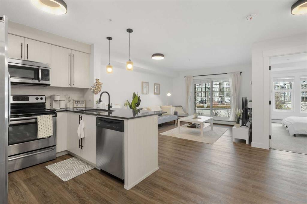 Welcome to 51 Oak, ideally situated in the highly sought-after SE lake community of Mahogany. This beautifully maintained condo offers over 500 sq ft of thoughtfully designed living space, complete with 1 bedroom, 1 full bathroom, and a titled parking stall. Step inside to discover durable vinyl plank flooring and a bright, open-concept layout that maximizes both comfort and functionality. The living area seamlessly extends to a spacious private patio through sliding glass doors, perfect for relaxing during warmer months. The modern kitchen showcases sleek white cabinetry, quartz countertops, stainless steel appliances, and a convenient island with breakfast bar seating. The generously sized bedroom features a large walk-through closet, providing ample storage, while the well-appointed 4-piece bathroom and in-suite laundry add everyday convenience. The titled parking stall is ideally located just steps from the patio, offering easy access through a secondary entrance. Enjoy the best of Mahogany living with the lake just a short walk away, offering year-round amenities from swimming and paddleboarding in the summer to skating in the winter. You’ll also appreciate being within walking distance to a vibrant shopping centre, complete with popular dining and retail options. Schools, parks, playgrounds, and public transit are all nearby, making this an exceptional location for a variety of lifestyles. Whether you’re a first-time homebuyer, downsizer, or investor, this stylish and low-maintenance unit presents an incredible opportunity to own in one of Calgary’s most desirable communities. Book your private showing today!